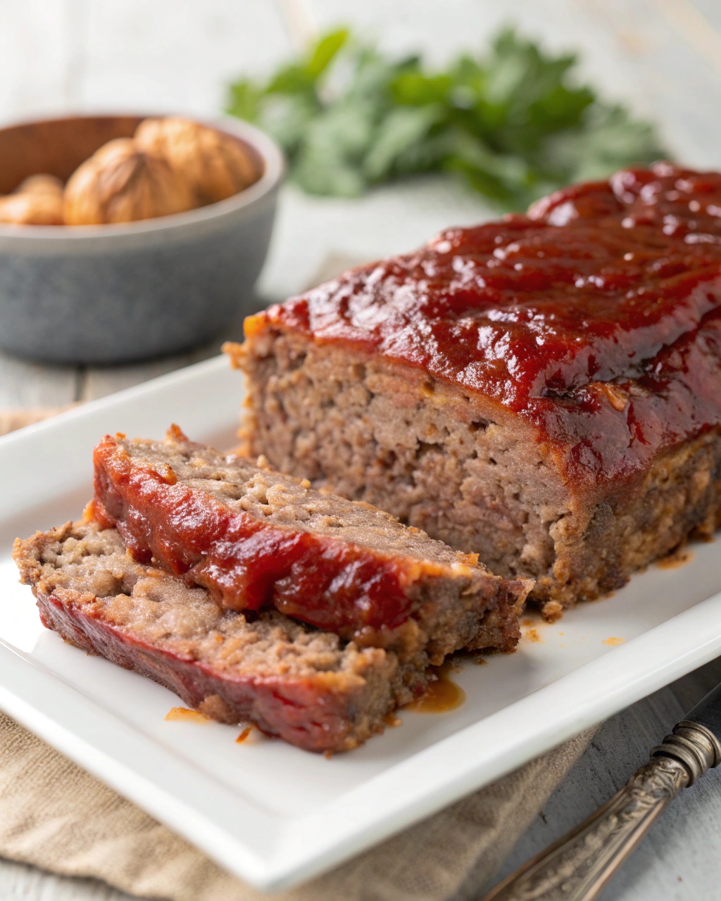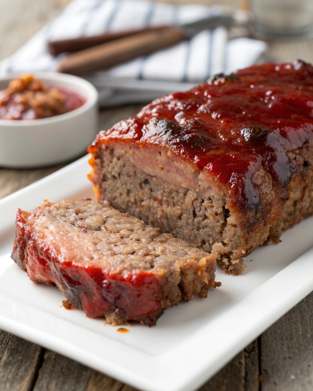 That glaze deserves a spotlight of its own — a simple mix of ketchup, brown sugar, and mustard that caramelizes as it bakes. It adds a shiny finish, a subtle sweetness, and a tang that perfectly balances the rich, meaty flavor underneath.