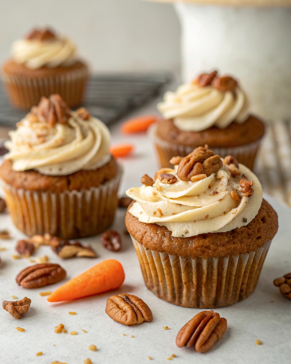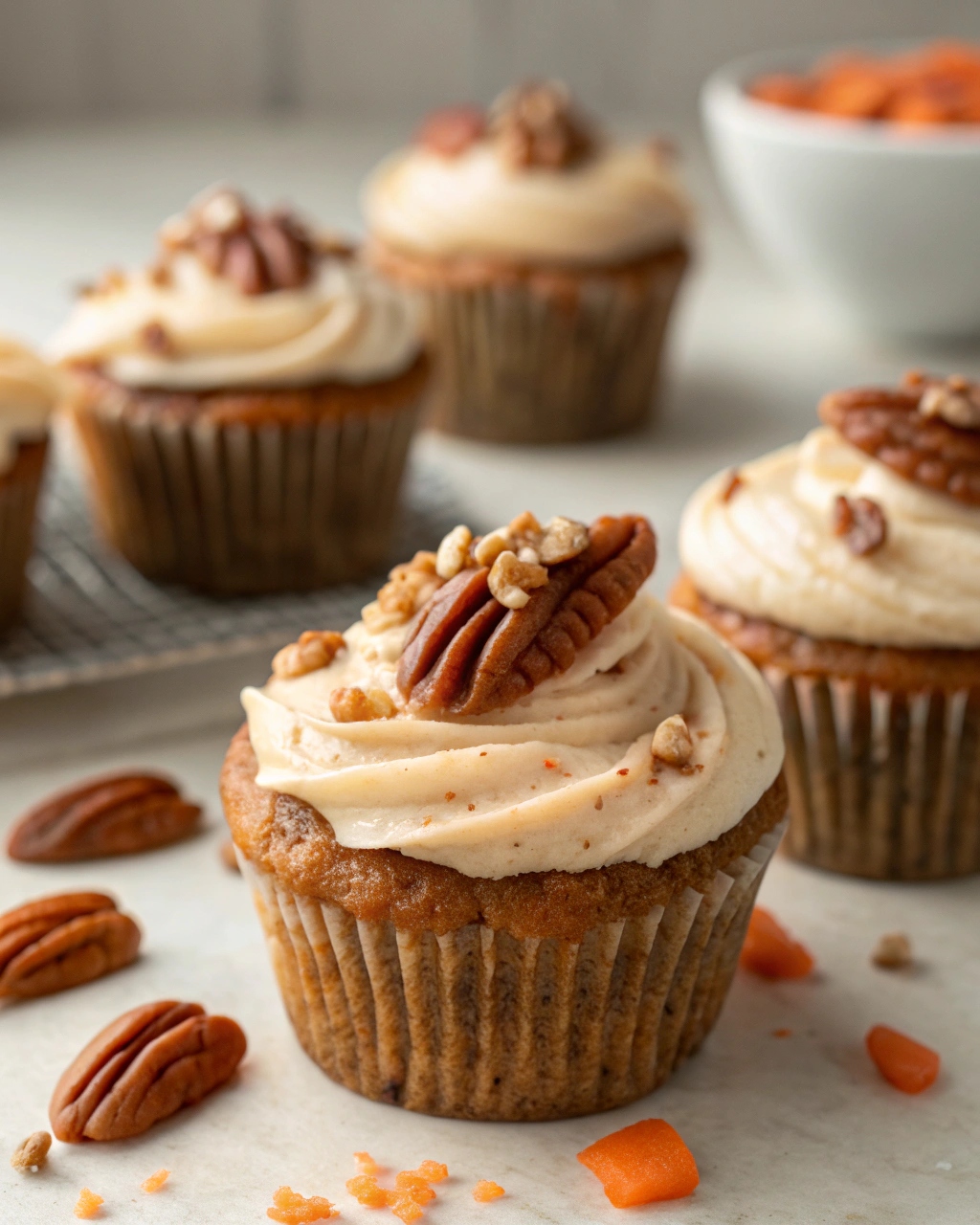 The addition of toasted pecans adds depth and crunch, elevating these cupcakes from simple to sophisticated. Every bite gives you that nutty aroma paired with tender crumb and creamy frosting — it’s dessert perfection.