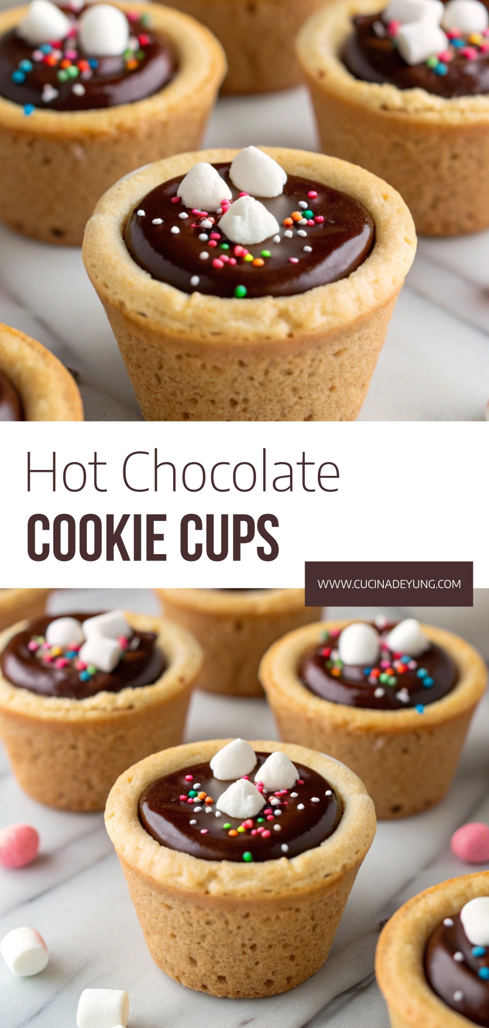 Hot Chocolate Cookie Cups are the ultimate festive bite-sized dessert—crispy cookie shells filled with rich chocolate ganache, a touch of Nutella, fluffy mini marshmallows, and adorable pretzel “handles” that make them look like tiny mugs of hot cocoa. These delightful treats are perfect for Christmas parties, winter gatherings, holiday cookie platters, or fun baking projects with kids. Made with refrigerated cookie dough and an easy microwave ganache, they’re simple, charming, and incredibly delicious. Their whimsical appearance, paired with deep chocolate flavor and marshmallow sweetness, makes them a must-bake for the holiday season.