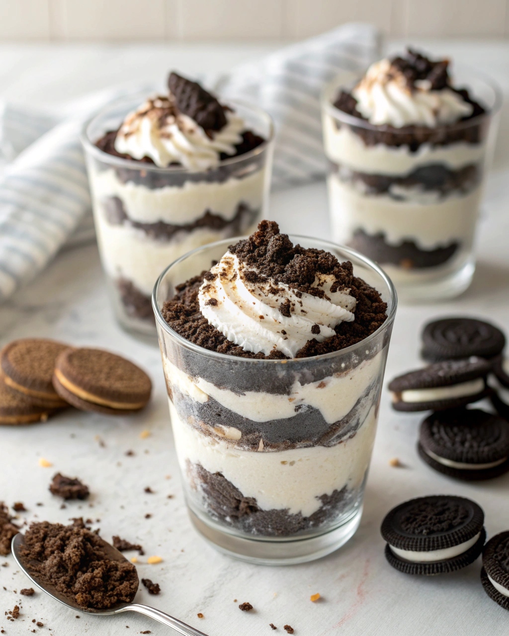 Refrigerate for at least 1 hour to allow the flavors to meld and the texture to firm up slightly. Garnish with crushed Oreos or chocolate shavings before serving.