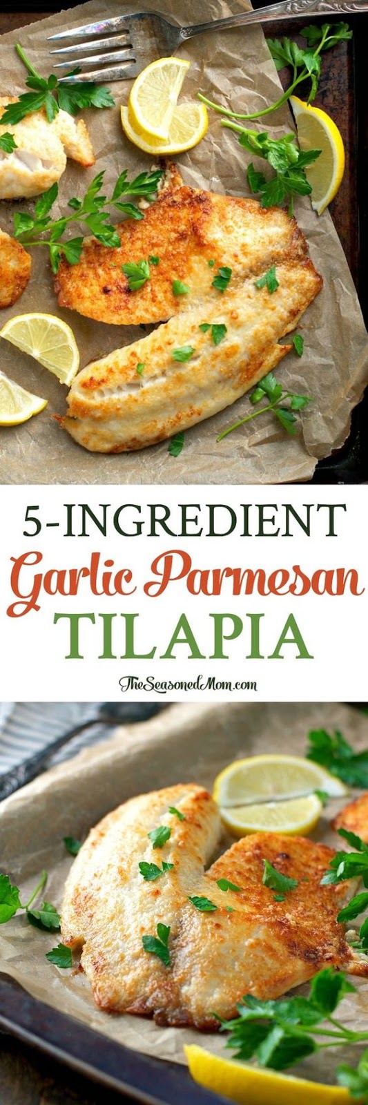 Get full recipe >> 5-Ingredient Garlic Parmesan Tilapia @ theseasonedmom.com