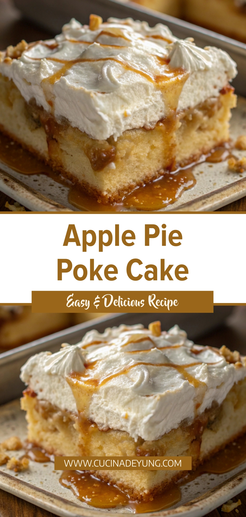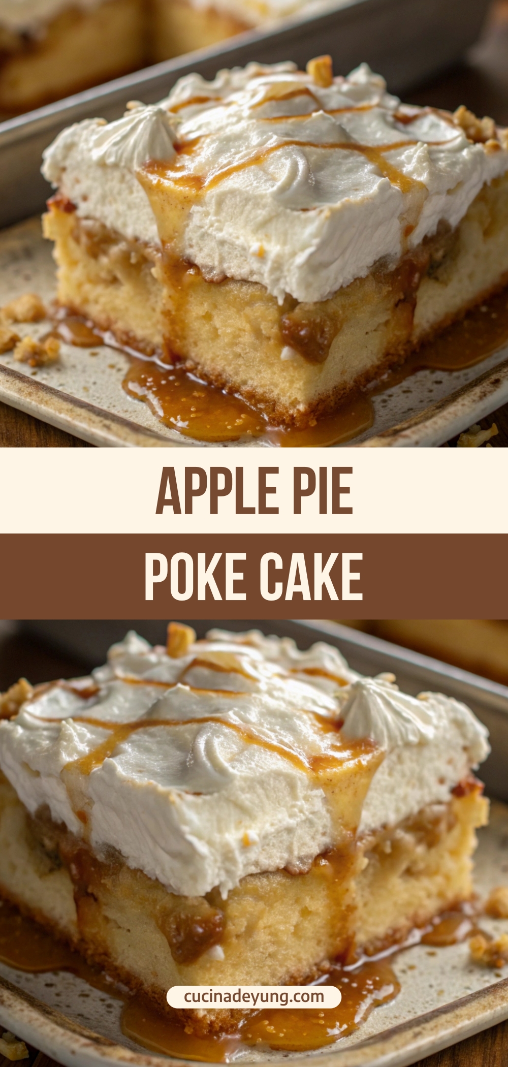 Apple pie poke cake combines the cozy flavors of classic apple pie with the ease of a poke cake. Soft white cake soaked with sweetened condensed milk is topped with warm cinnamon apples and finished with a light, creamy vanilla topping for a dessert that’s comforting, rich, and irresistibly easy to make.