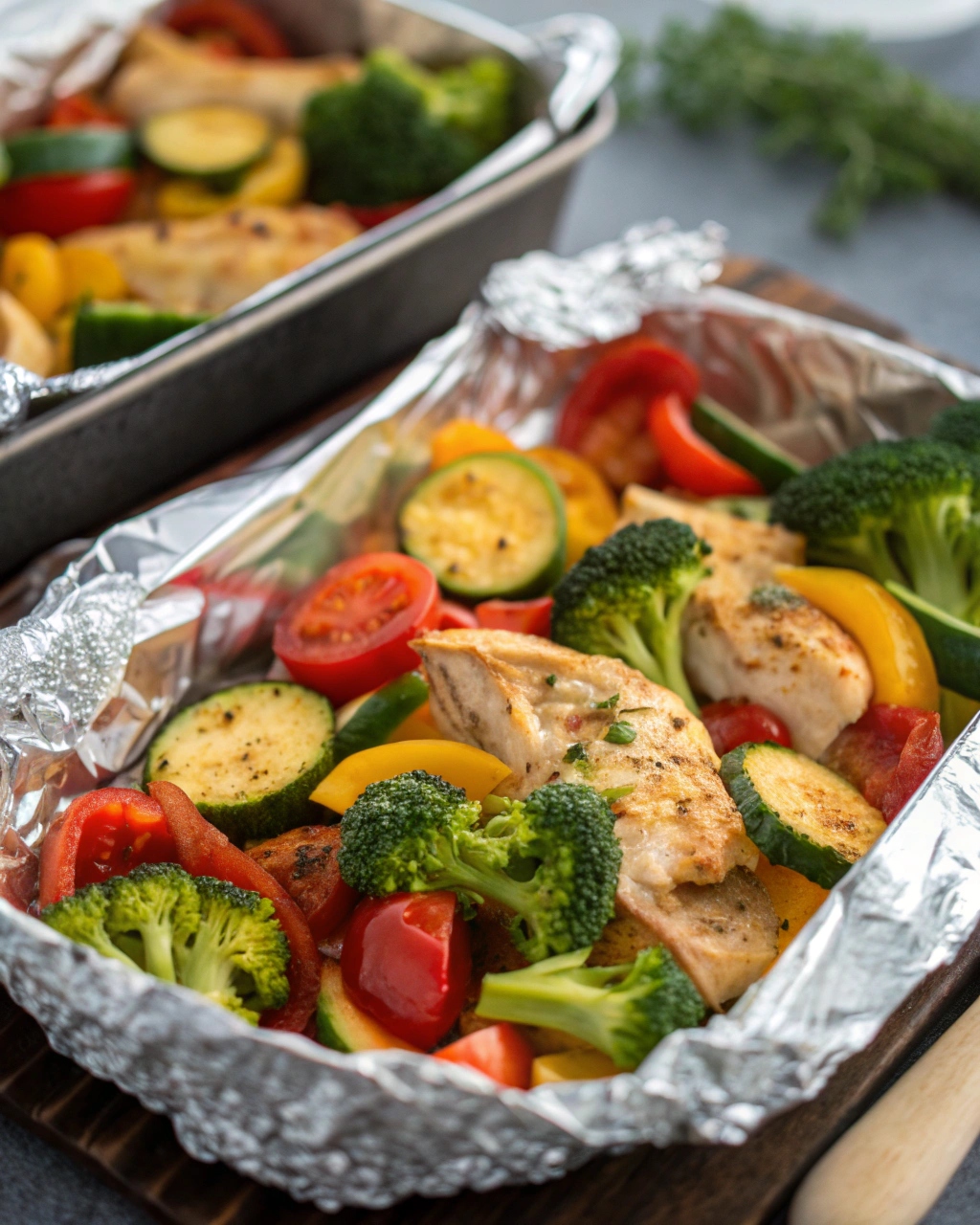 The fresh vegetables—like broccoli, zucchini, tomatoes, onions, and colorful bell peppers—add vibrant color and natural sweetness. These vegetables roast and steam inside the foil, ensuring they maintain their nutrients while gaining a rich, savory flavor.