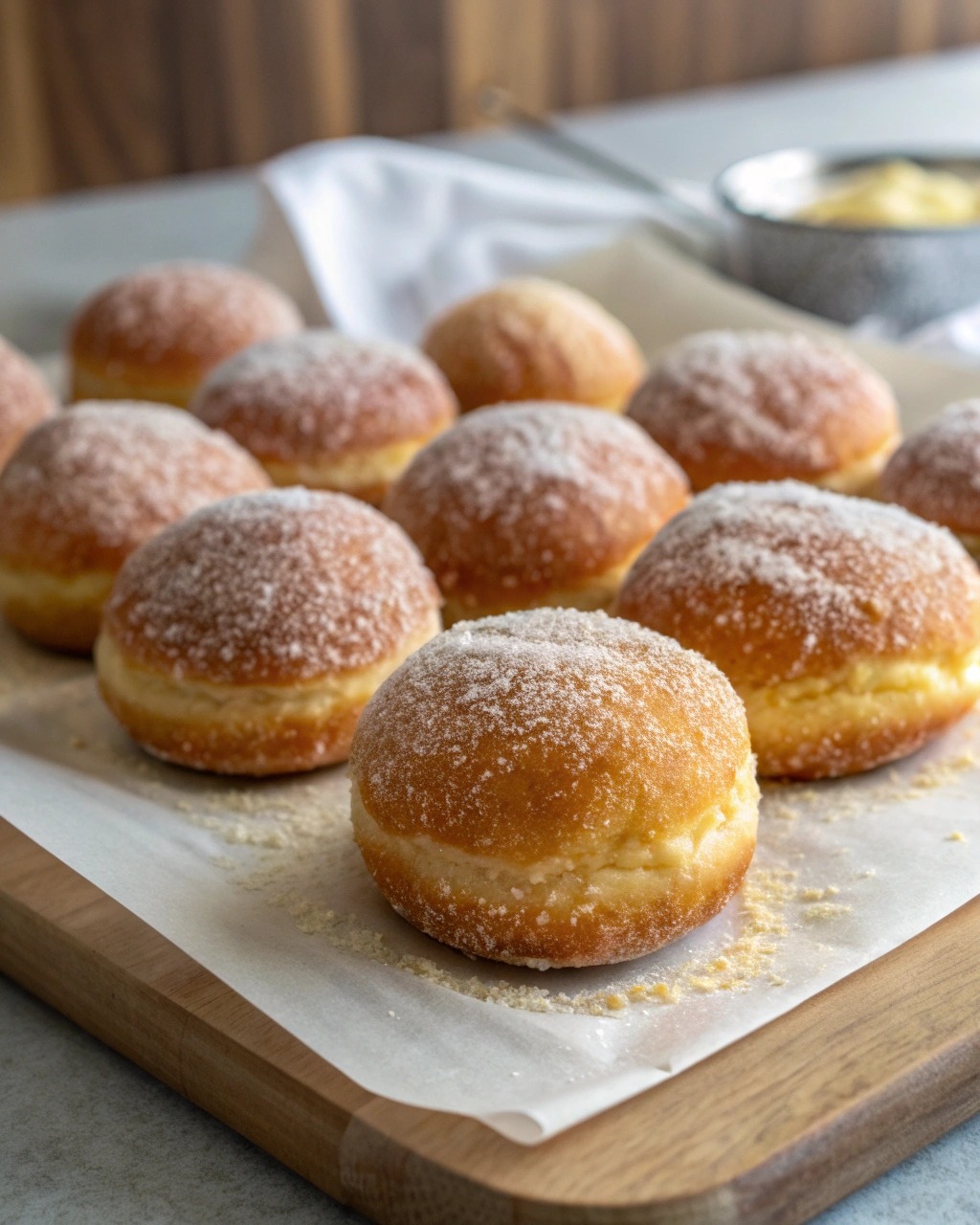 Because they are best eaten fresh, bomboloni shine when made the same day. The dough process takes time (rising, shaping, resting), but the hands-on time is manageable. The result is bakery-level doughnuts you made yourself—luxuriously soft and sweet.