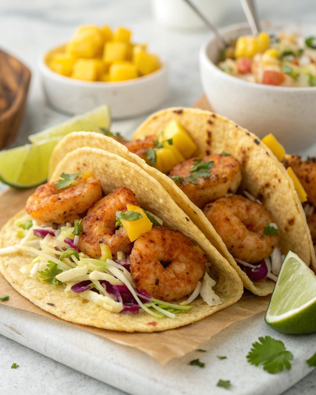 This recipe captures everything you love about a great taco: texture, flavor, and freshness. The Cajun-spiced shrimp bring the boldness, while the mango salsa adds a cool, fruity contrast that keeps every bite exciting.