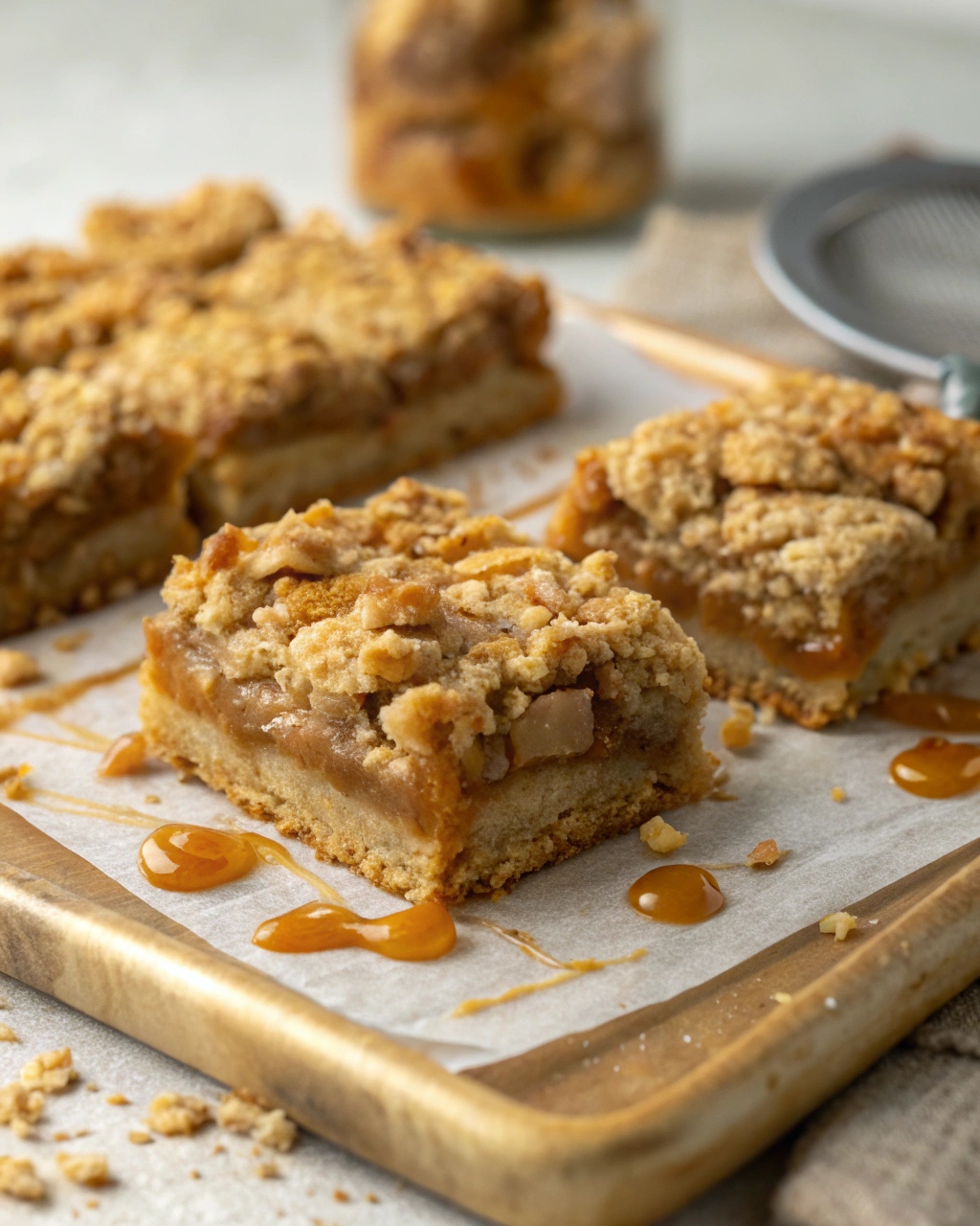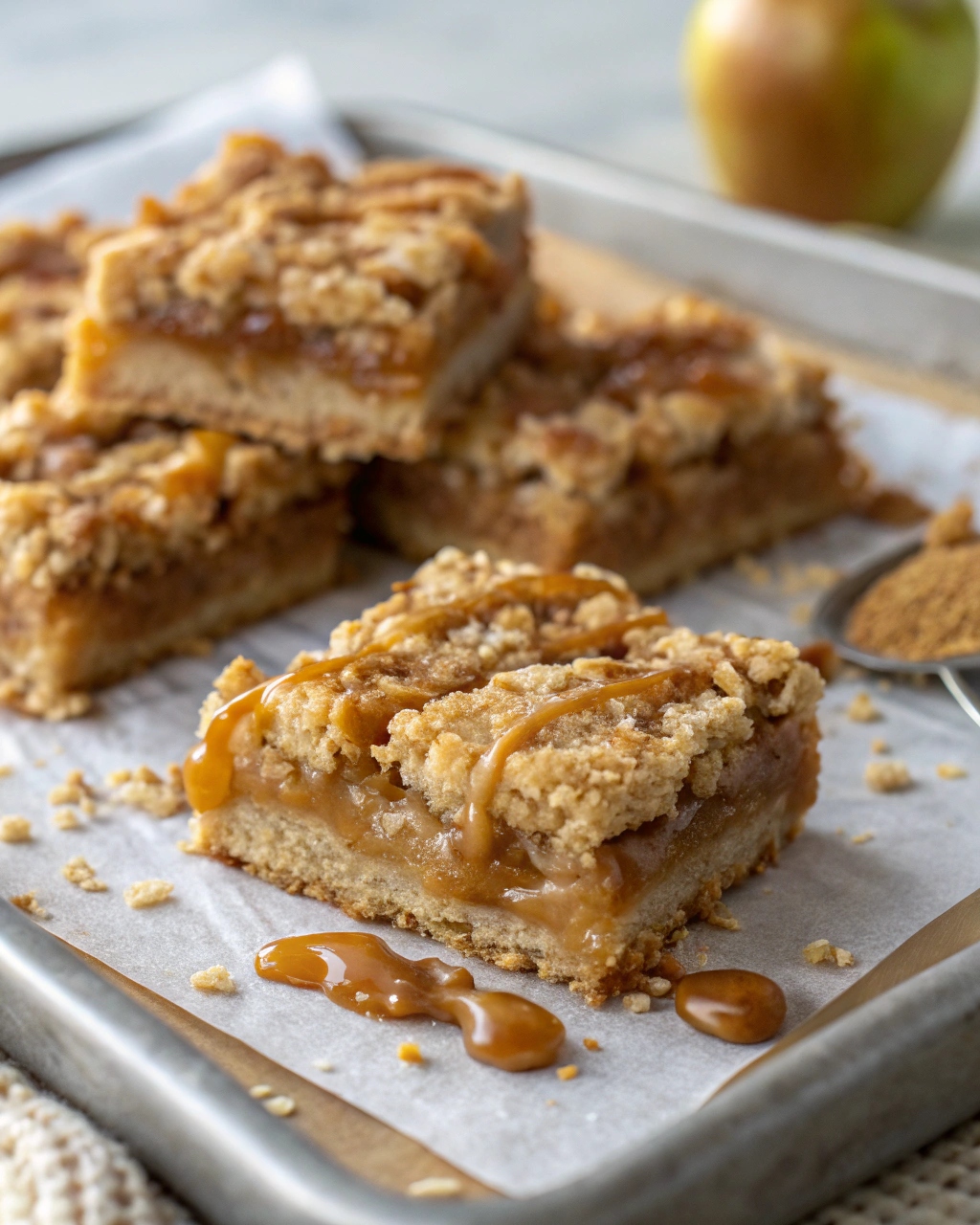 So grab those apples, preheat your oven, and get ready to fill your kitchen with the warm scent of cinnamon and caramel — because once these bars are baking, everyone will find a reason to wander into the kitchen.