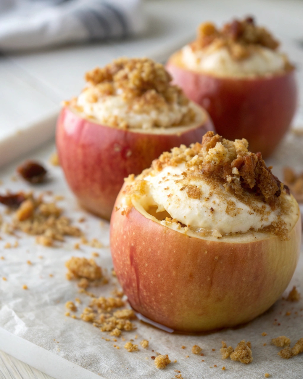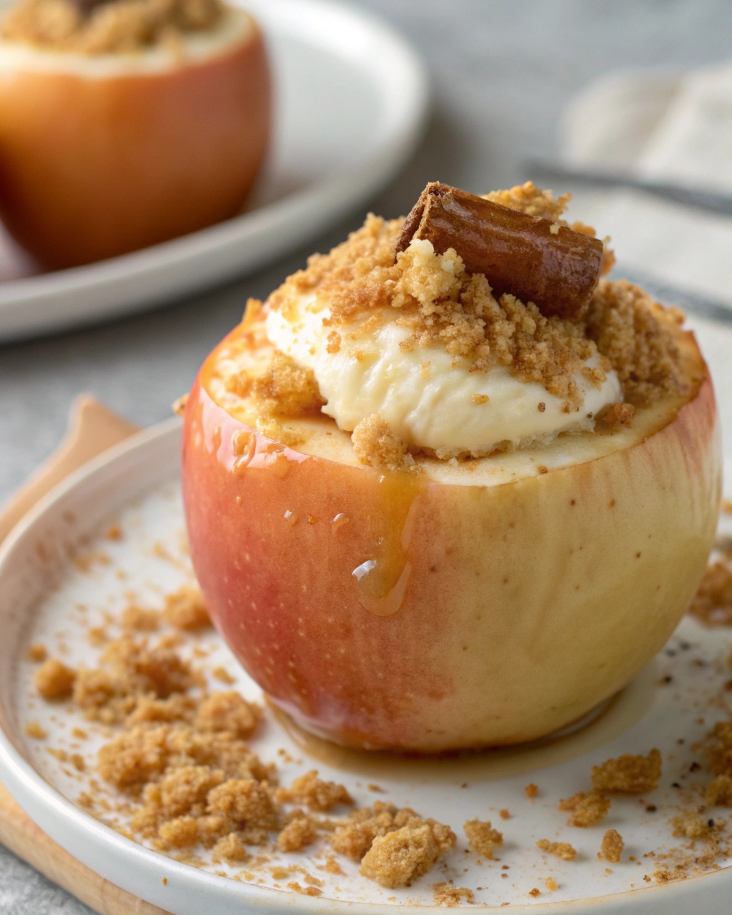 The texture contrast is part of what makes this recipe shine. You get soft baked apple, creamy cheesecake, and optional crunchy toppings all in one bite.