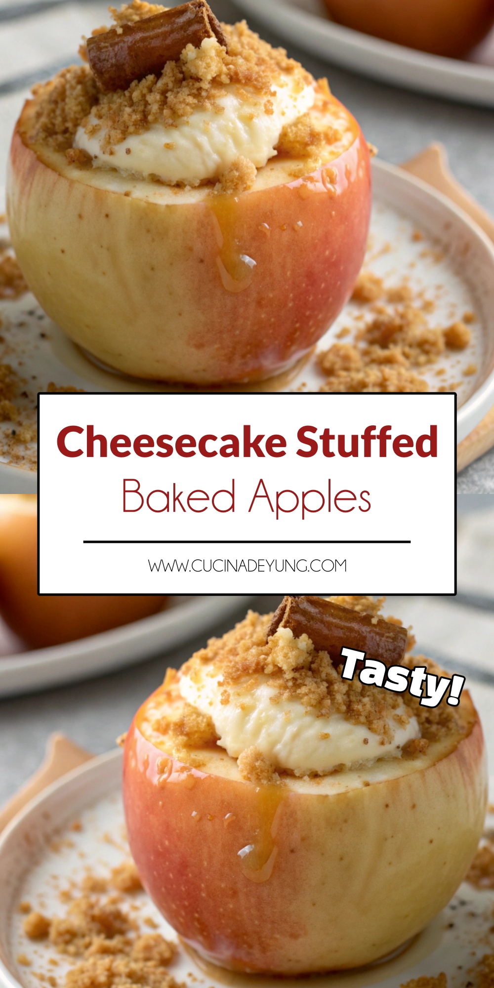 This cheesecake stuffed baked apples combine everything people love about classic cheesecake and baked fruit desserts into one simple, comforting dish. Whole apples are hollowed out and filled with a smooth cinnamon-scented cheesecake filling, then baked until the apples are tender and the centers are softly set. The result is warm, creamy, lightly spiced, and naturally portioned, making this dessert feel both indulgent and approachable. Finished with optional graham cracker crumbs, caramel sauce, or chopped pecans, these apples deliver big dessert flavor without the heaviness of a full cheesecake.