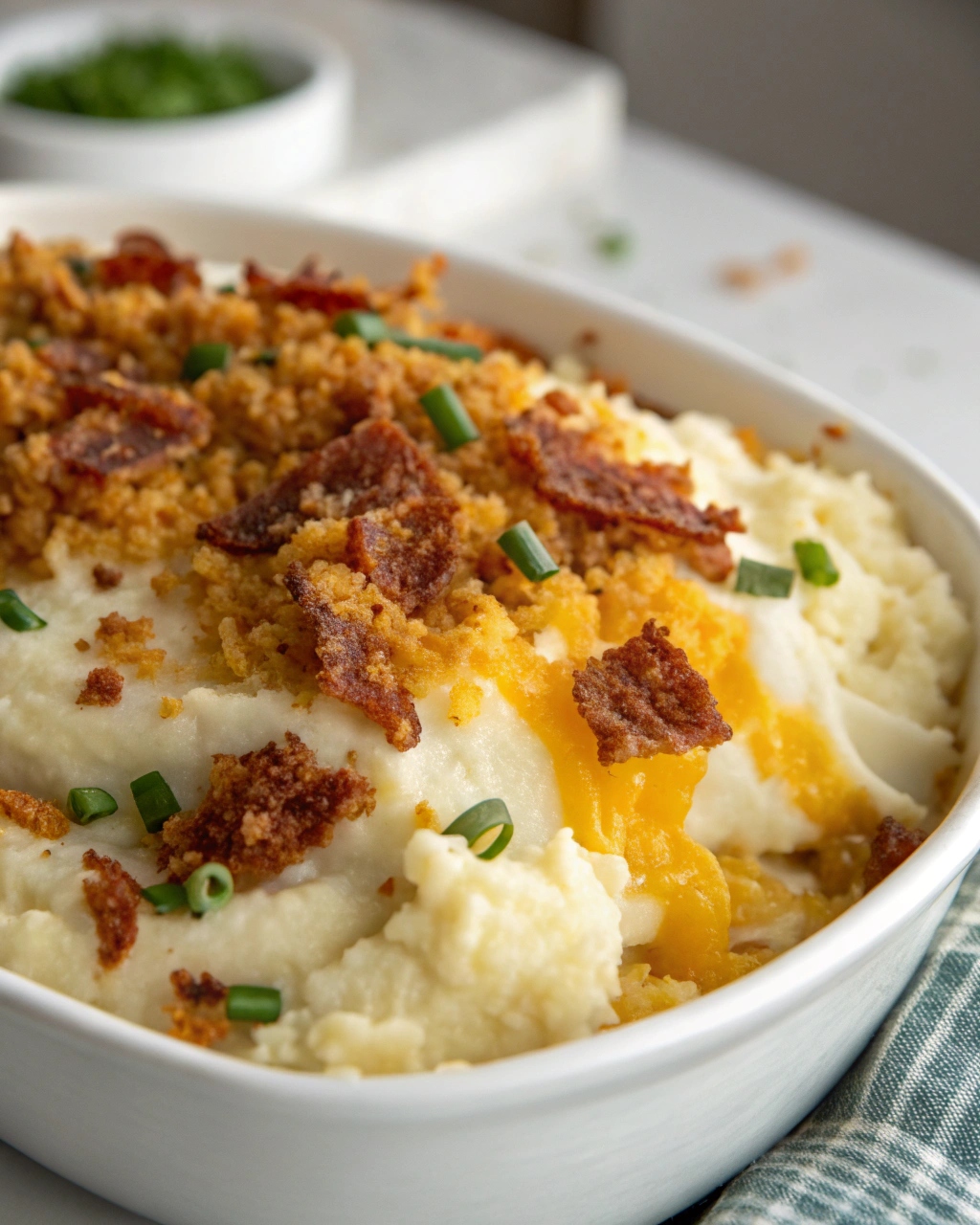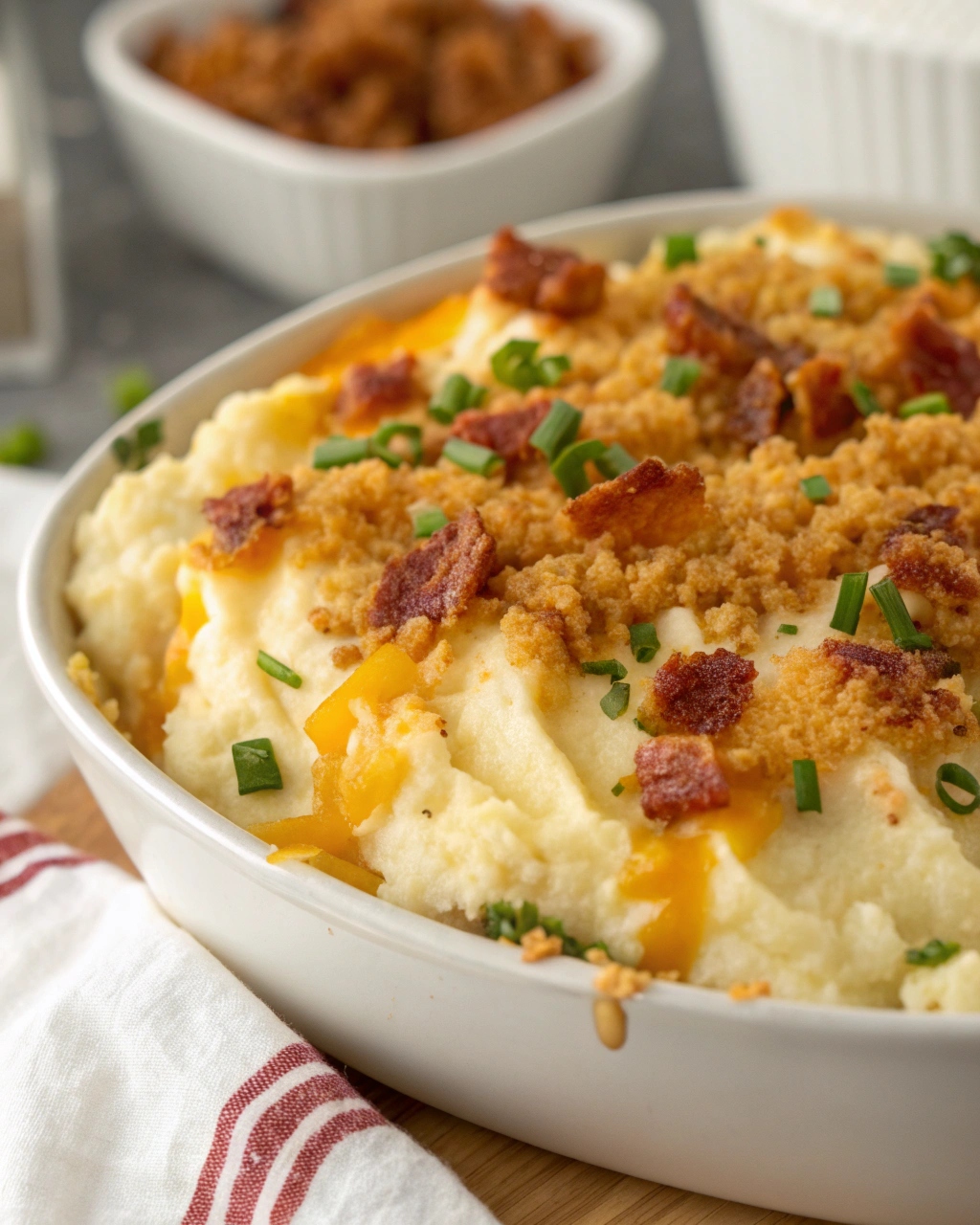 This recipe is especially popular for holiday meals like Thanksgiving and Christmas, where mashed potatoes are a must-have side dish. Baking them with cheese and a crispy topping not only makes them more flavorful, but also allows you to prepare them ahead of time, freeing up space and energy on busy cooking days.