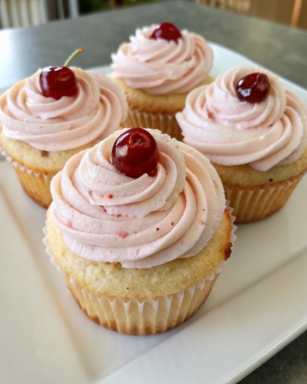 These cupcakes are light, not overly sweet, and have a delicate almond flavor that pairs beautifully with the cherry-kissed frosting. Easy to make, pretty to serve, and always a crowd favorite, they’re the kind of recipe that makes people say, “Wait, did you really make these from scratch?” Yes. And now you can too.
