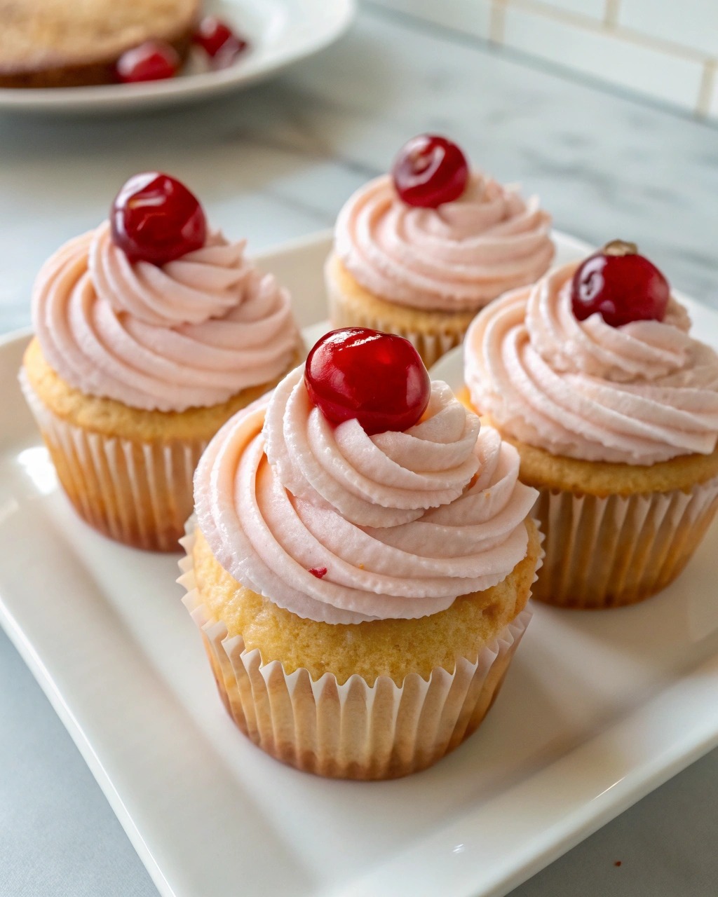 These cupcakes are light, not overly sweet, and have a delicate almond flavor that pairs beautifully with the cherry-kissed frosting. Easy to make, pretty to serve, and always a crowd favorite, they’re the kind of recipe that makes people say, “Wait, did you really make these from scratch?” Yes. And now you can too.