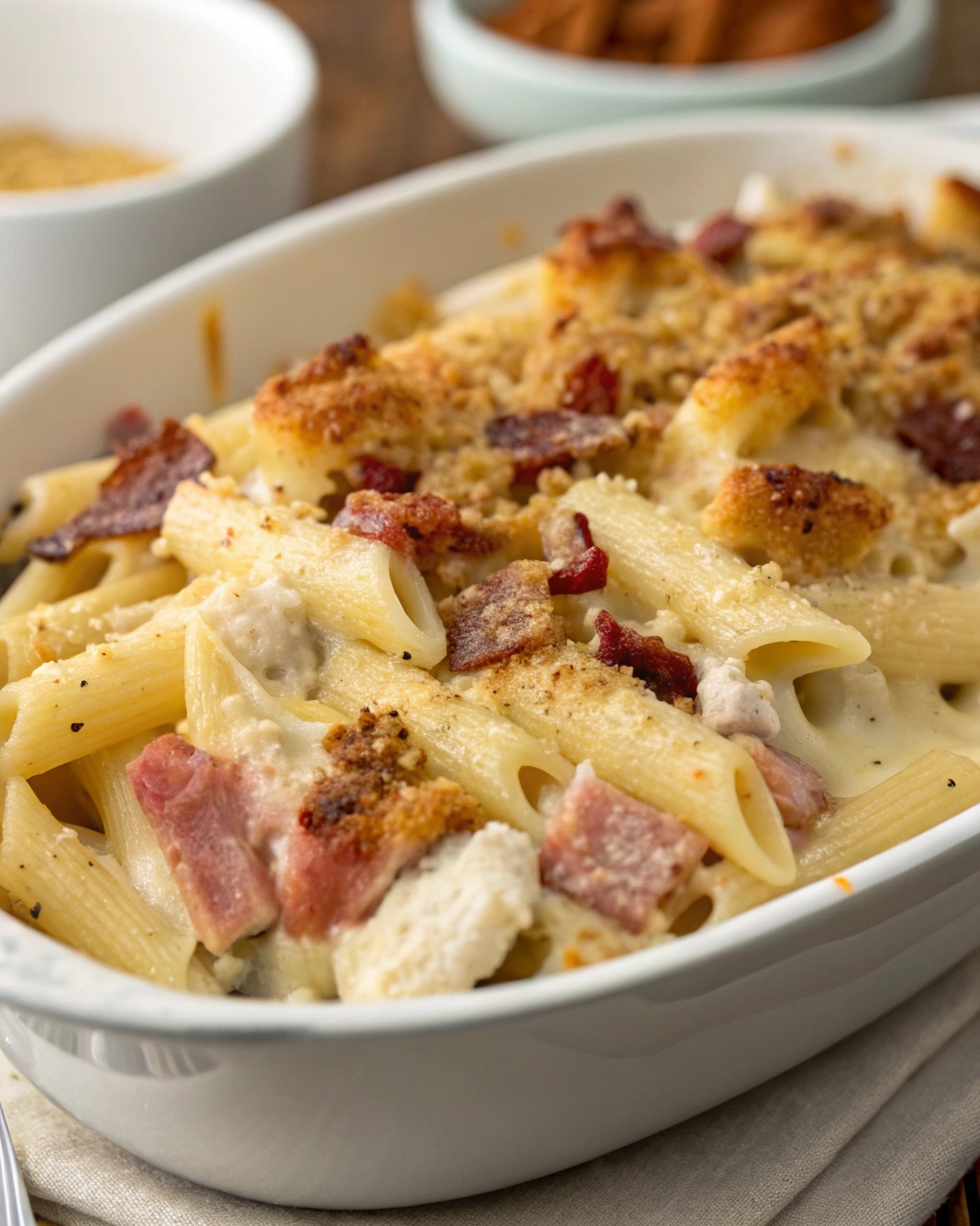 Chicken cordon bleu is known for its rich, layered flavors of chicken, ham, and cheese. This pasta version takes those same flavors and turns them into a cozy, baked dish that is easier to prepare and perfect for sharing.