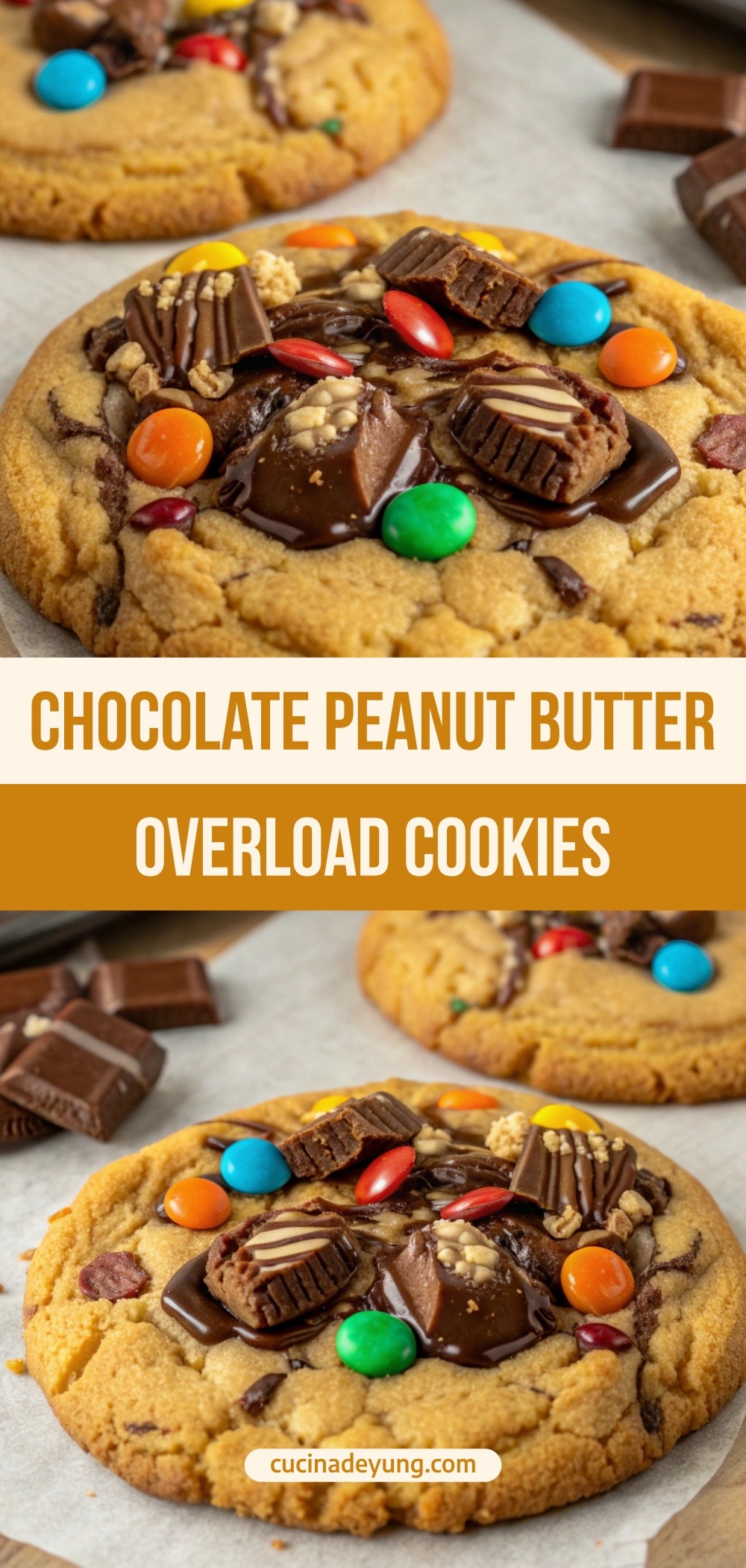 Few things in the dessert world feel as comforting and celebratory as a cookie that’s unapologetically packed with all your favorite treats. These chocolate peanut butter overload cookies are exactly that — big, soft-centered cookies made with a rich peanut butter dough, then layered with m&m’s, chopped peanut butter cups, and finally finished with a luscious chocolate ganache. They’re the kind of cookies that look over-the-top on purpose — messy in the most beautiful, delicious way.