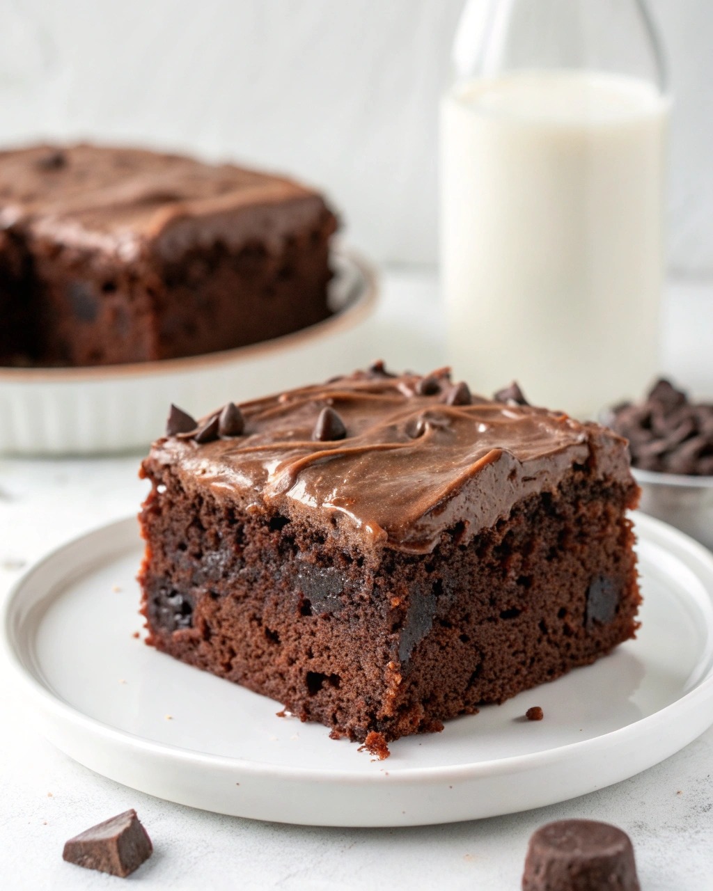 The chocolate flavor here is bold but layered. You’ve got cocoa powder in the batter and pudding, coffee to amplify the richness, and semi-sweet chocolate chips in the frosting for that melt-in-your-mouth finish. It’s an all-out chocolate experience, but not in a sugar-bomb kind of way. It’s indulgent, yes, but surprisingly balanced.
