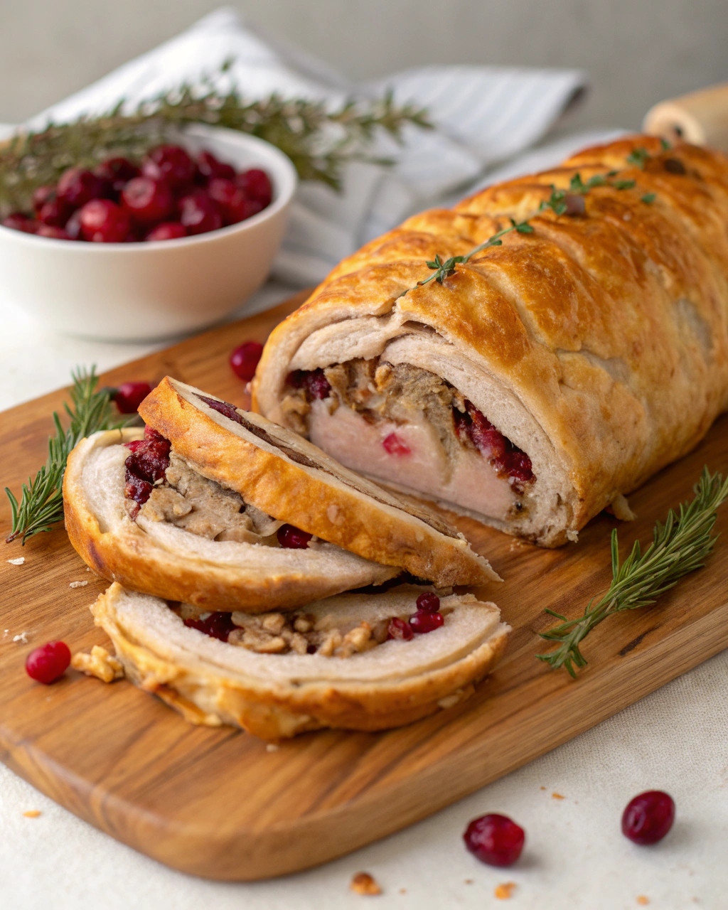 The combination of tender turkey breast wrapped in flaky puff pastry feels luxurious, yet approachable. You don’t need to be a professional chef to make it look stunning. The layers of flavor — buttery pastry, savory stuffing, and sweet cranberries — make every slice irresistible.