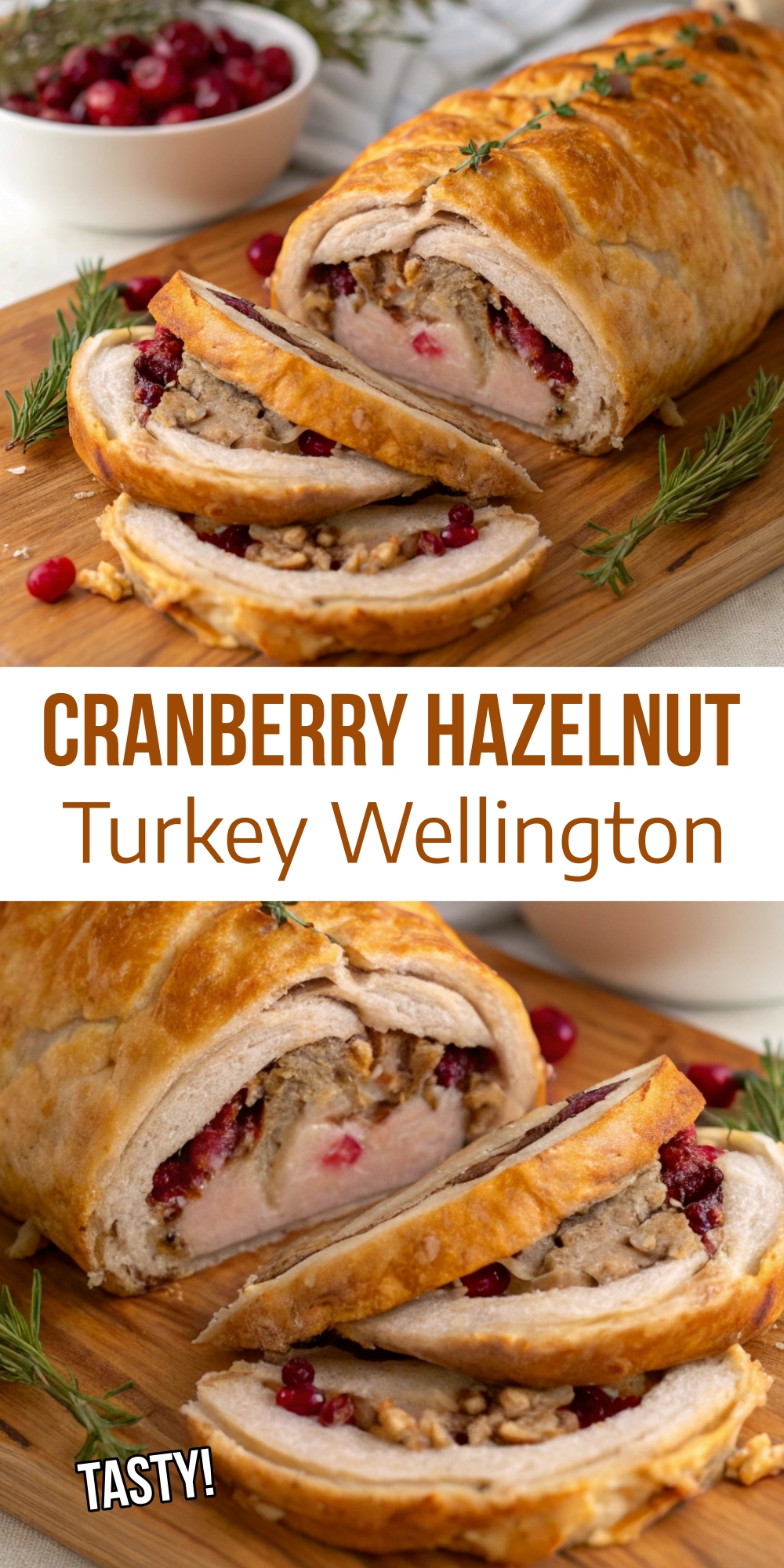 This Cranberry Hazelnut Turkey Wellington is a show-stopping holiday main course that combines tender turkey breast with a savory hazelnut stuffing and tart cranberries, all wrapped in buttery puff pastry. The result is a crispy, golden crust and a juicy, flavorful turkey that looks as impressive as it tastes. Ideal for Thanksgiving, Christmas, or special family dinners, this easy turkey Wellington recipe brings gourmet flavor to your home kitchen.