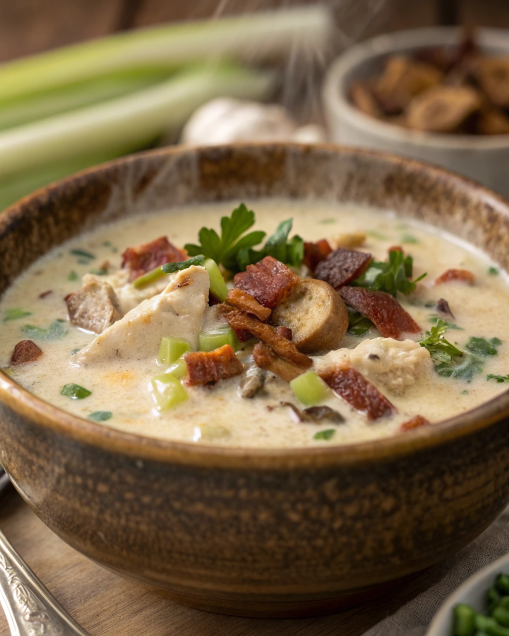 If you’re searching for a cozy, homemade soup that’s easy to prepare, deeply flavorful, and aligned with pork-free cooking, this Cream of Chicken Soup with Turkey Bacon is a recipe you’ll come back to again and again.