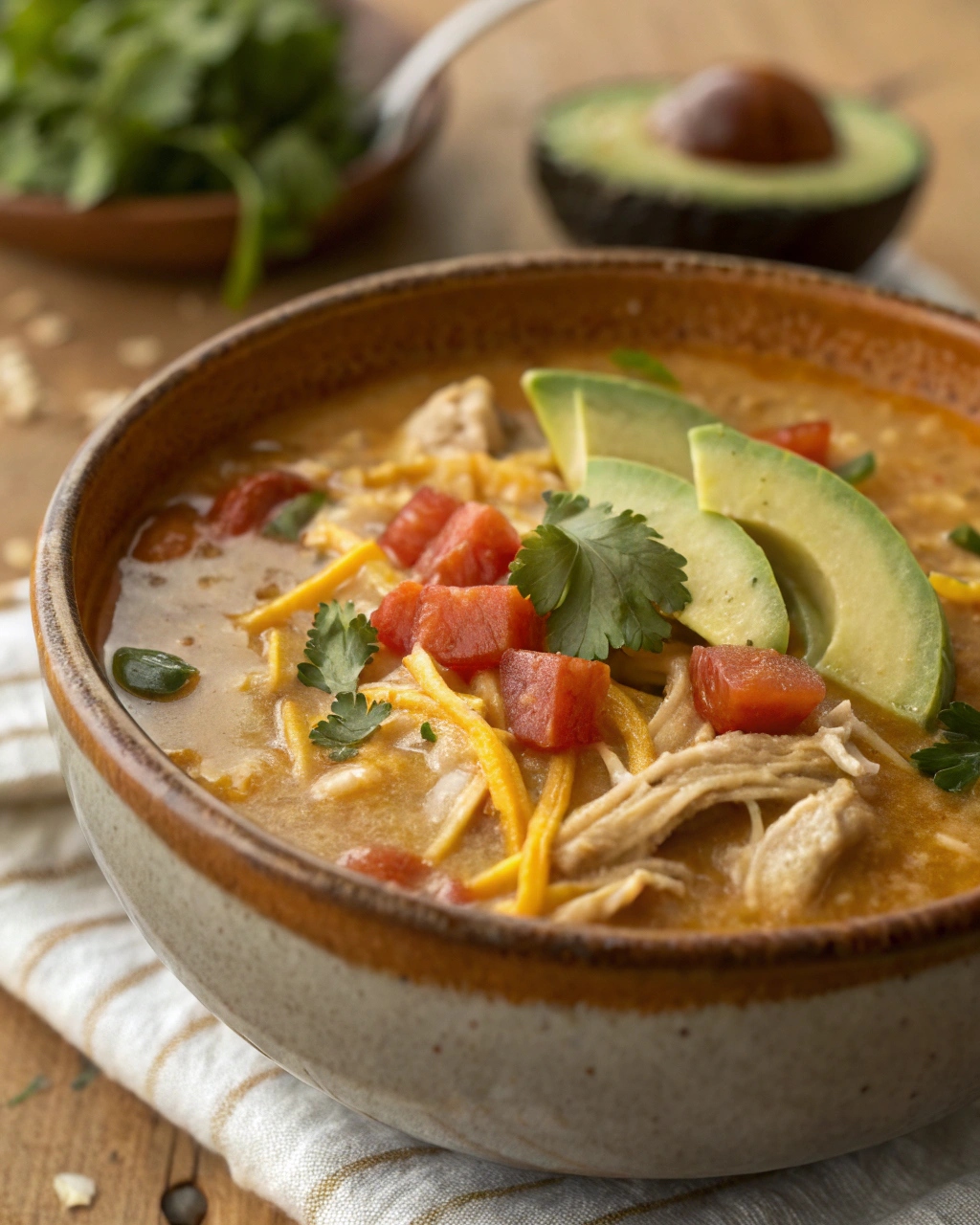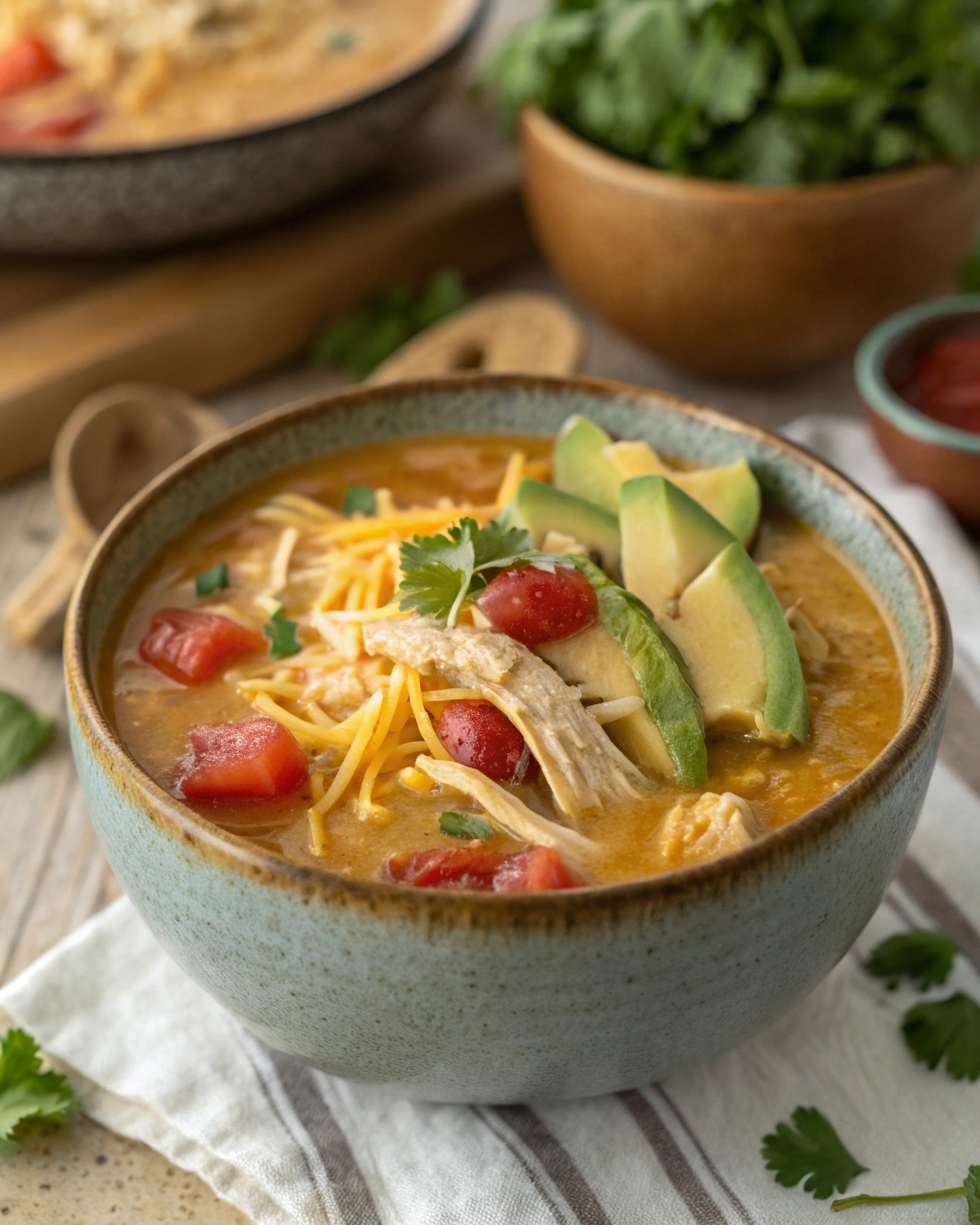 This Crock Pot chicken soup also pairs beautifully with toppings. Add sliced avocado for creaminess, a sprinkle of cilantro for freshness, or a dollop of sour cream to cool down the heat. For crunch, crushed tortilla chips or low-carb cheese crisps on top take it to the next level.