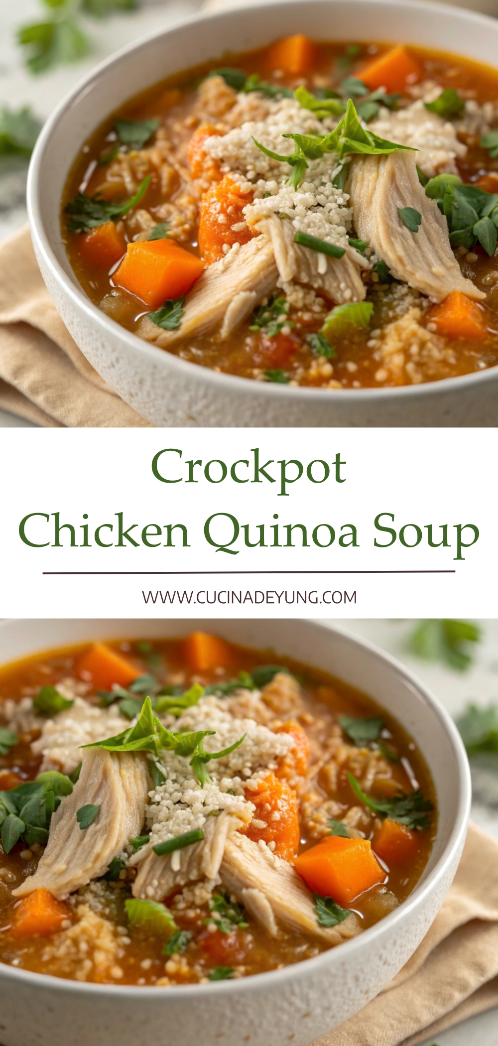 This Crockpot Chicken, Quinoa, and Vegetable Soup is a wholesome, comforting meal made with tender shredded chicken, hearty quinoa, and a mix of vegetables simmered in a flavorful herb-infused broth. It’s a well-balanced soup that feels both light and filling, perfect for busy days when you want something nourishing with minimal effort.