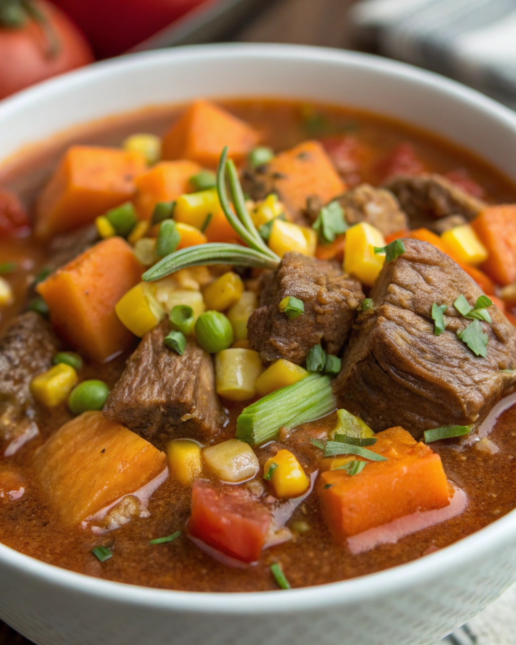 This stew is incredibly easy to prepare and cooks slowly to develop deep, comforting flavors. The combination of tender beef, sweet vegetables, and a rich broth makes it filling and satisfying, while the slow cooker does most of the work. It’s perfect for busy days, meal prep, or cozy family dinners.