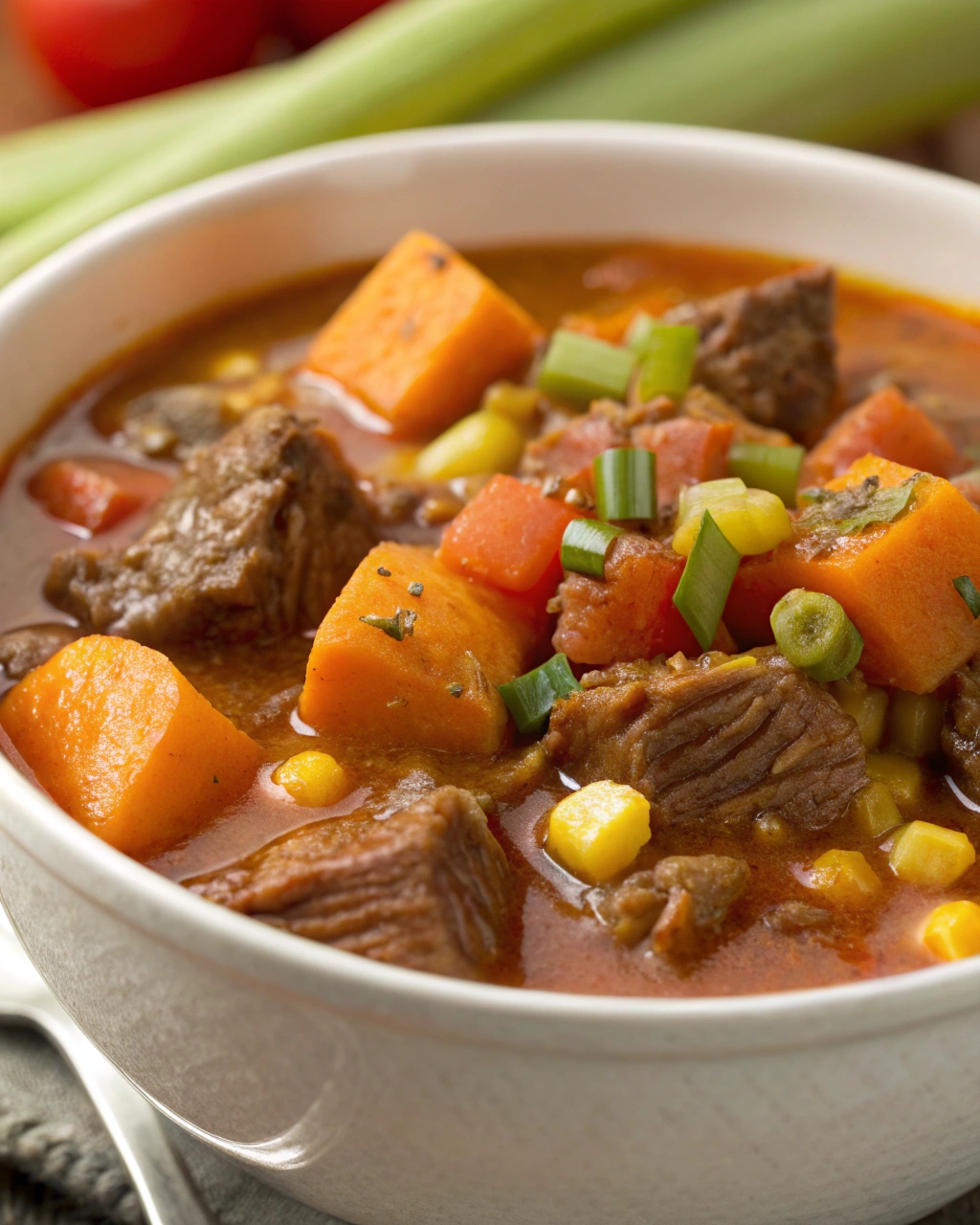 This Crockpot Sweet Potato Stew is a hearty, slow-cooked dish filled with tender beef, sweet potatoes, and vegetables simmered in a rich, savory broth. The natural sweetness of the potatoes pairs beautifully with the deep, comforting flavors of the stew, creating a satisfying meal that’s both nourishing and full of warmth.