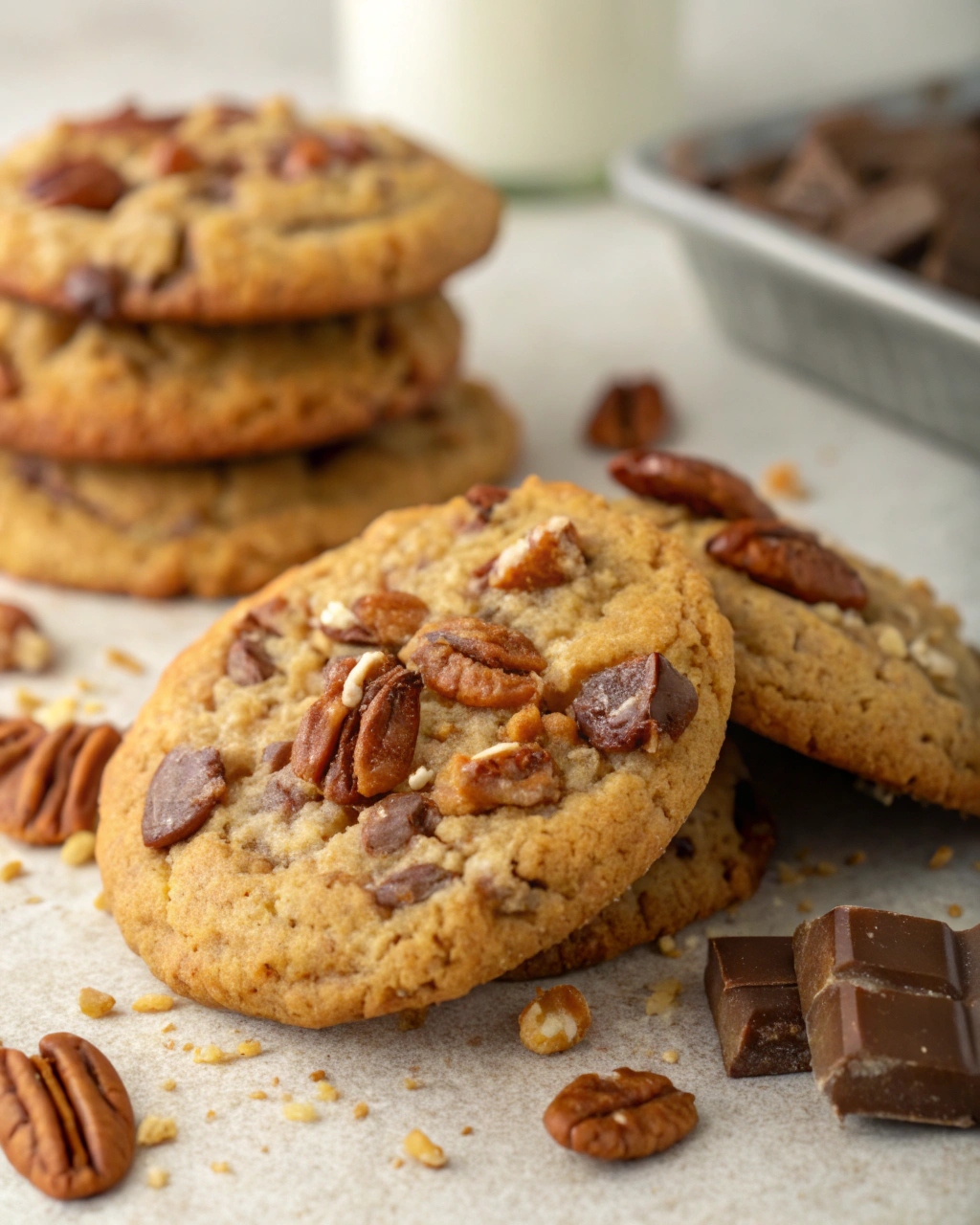 Pecans add a deep, nutty flavor that pairs beautifully with the sweetness of the toffee bits. Their slight crunch balances the softness of the dough.