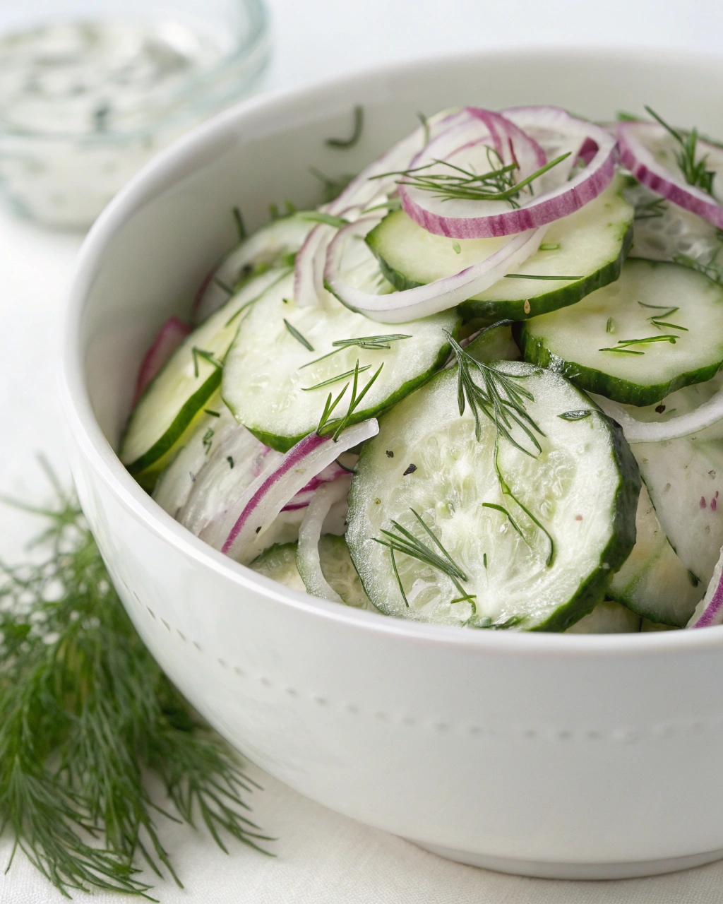 This dish also holds nostalgic value for many people. Variations of cucumber salad appear in German, Scandinavian, Eastern European, and American cuisine, often passed down through generations. Families may prepare it slightly differently—some add mustard, others thin the dressing with milk, and some use fresh herbs from the garden. This recipe honors those roots while offering a balanced version that’s easy to adapt to personal taste.