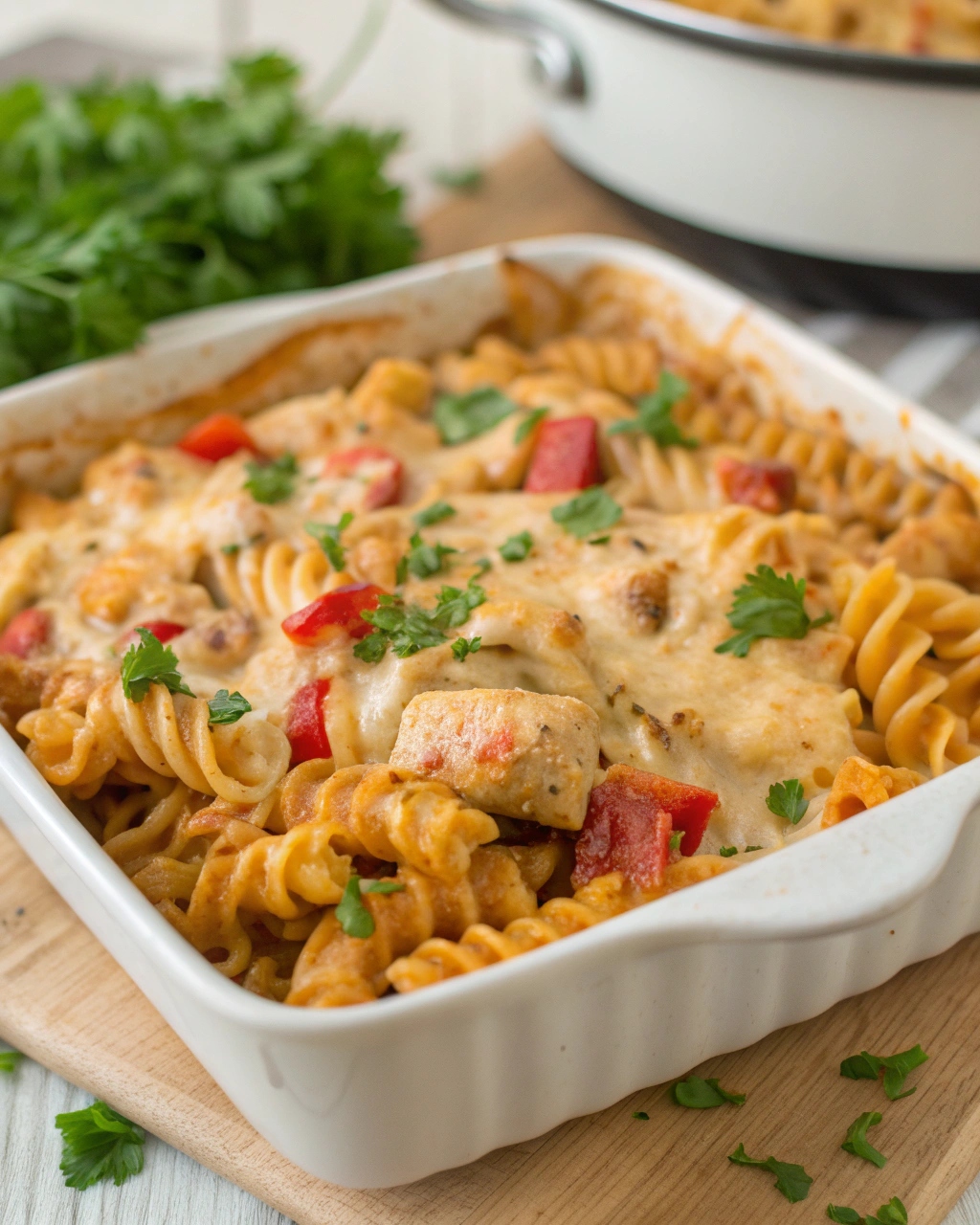 Whether you’re a fan of easy pasta bakes, a lover of bold flavors, or someone who just wants a warm and satisfying dinner without the mess, this Cajun Chicken Pasta hits all the right notes. It’s cozy, colorful, and comforting — a one-pan wonder that proves quick dinners don’t have to be boring.