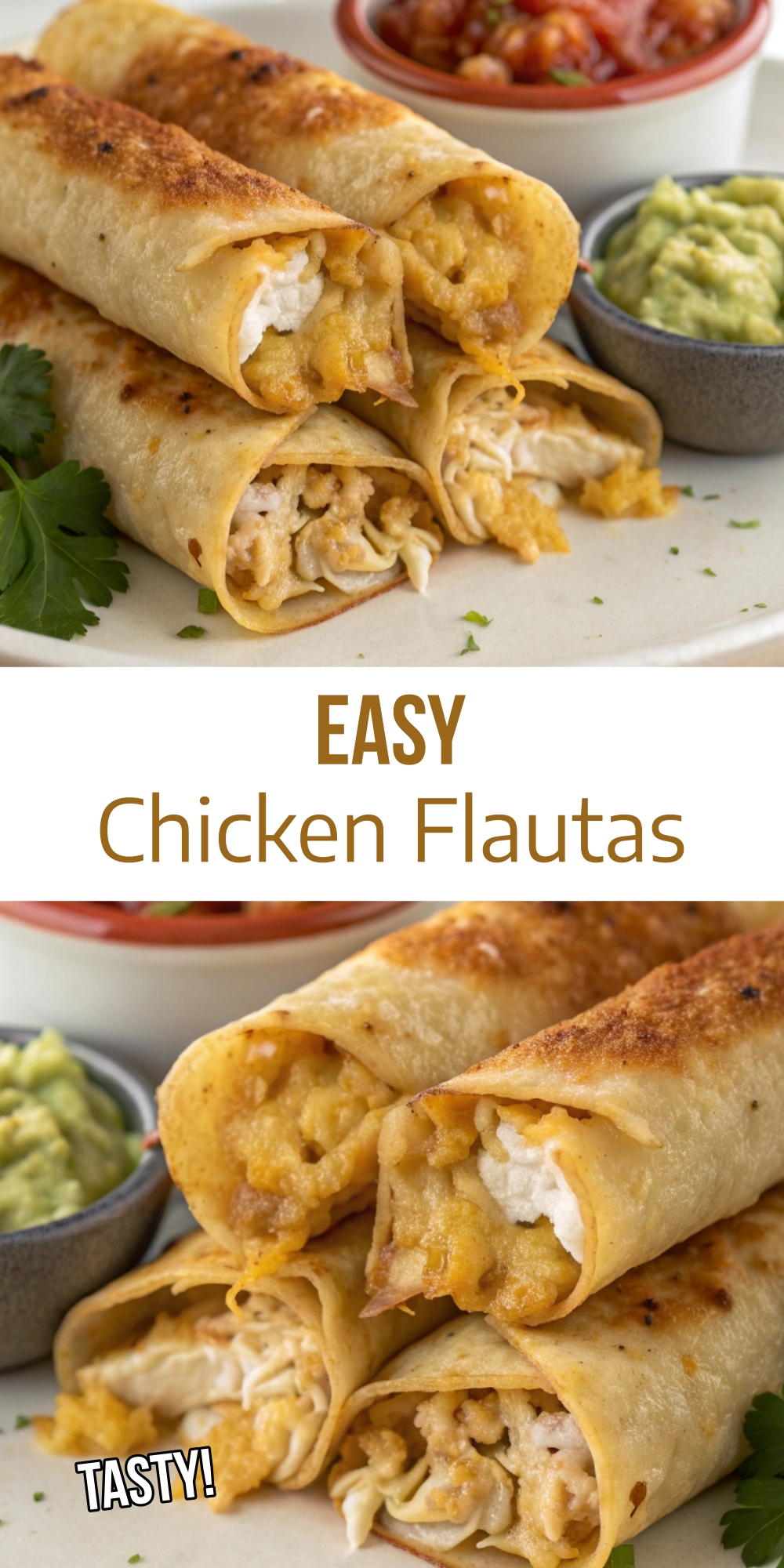 These Chicken Flautas are the ultimate easy Mexican chicken recipe — crispy on the outside, creamy and cheesy on the inside. Made with shredded chicken, cream cheese, and Monterey Jack cheese, each bite bursts with bold flavor and perfect crunch. Whether you fry or bake them, these homemade flautas are a family favorite dinner that’s ready in under 30 minutes.