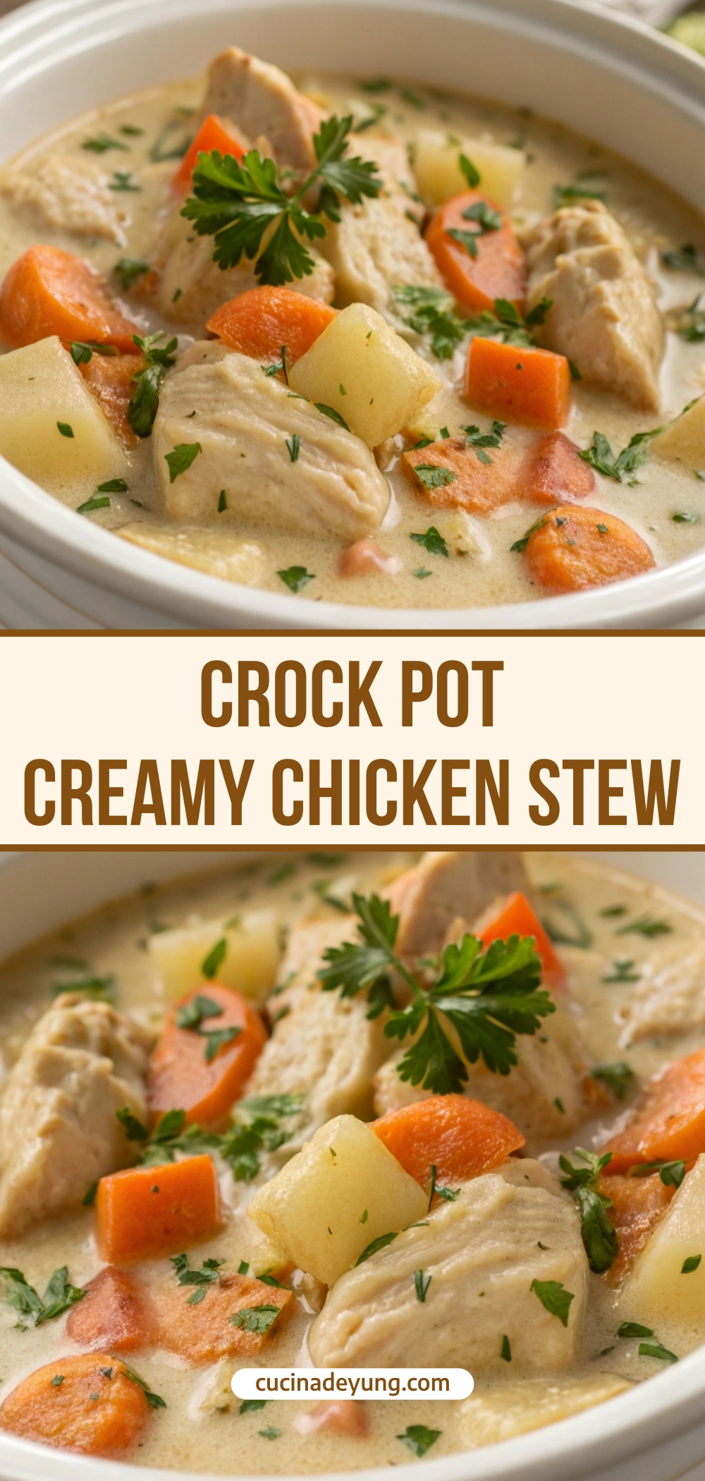 This Crock Pot Creamy Chicken Stew is pure comfort in a bowl — tender chunks of chicken, creamy potatoes, sweet carrots, and a rich, velvety sauce that simmers all day to perfection. It’s the cozy, hearty meal you’ll crave on chilly evenings, made effortlessly right in your slow cooker.