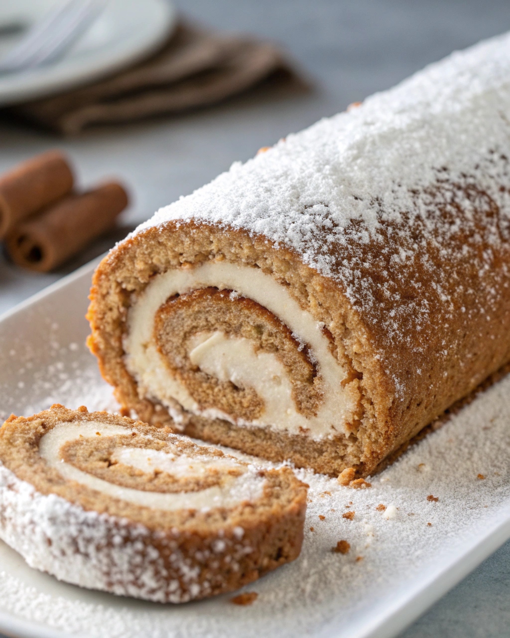 The cinnamon whipped cream filling is another highlight of this recipe. Rich, airy, and infused with warm spice, it pairs beautifully with the gingerbread sponge. Unlike heavier buttercream, this whipped filling keeps the cake light and refreshing, making it a perfect finish to a hearty holiday meal. It also spreads easily and rolls smoothly, preventing cracks and ensuring a clean swirl when sliced.