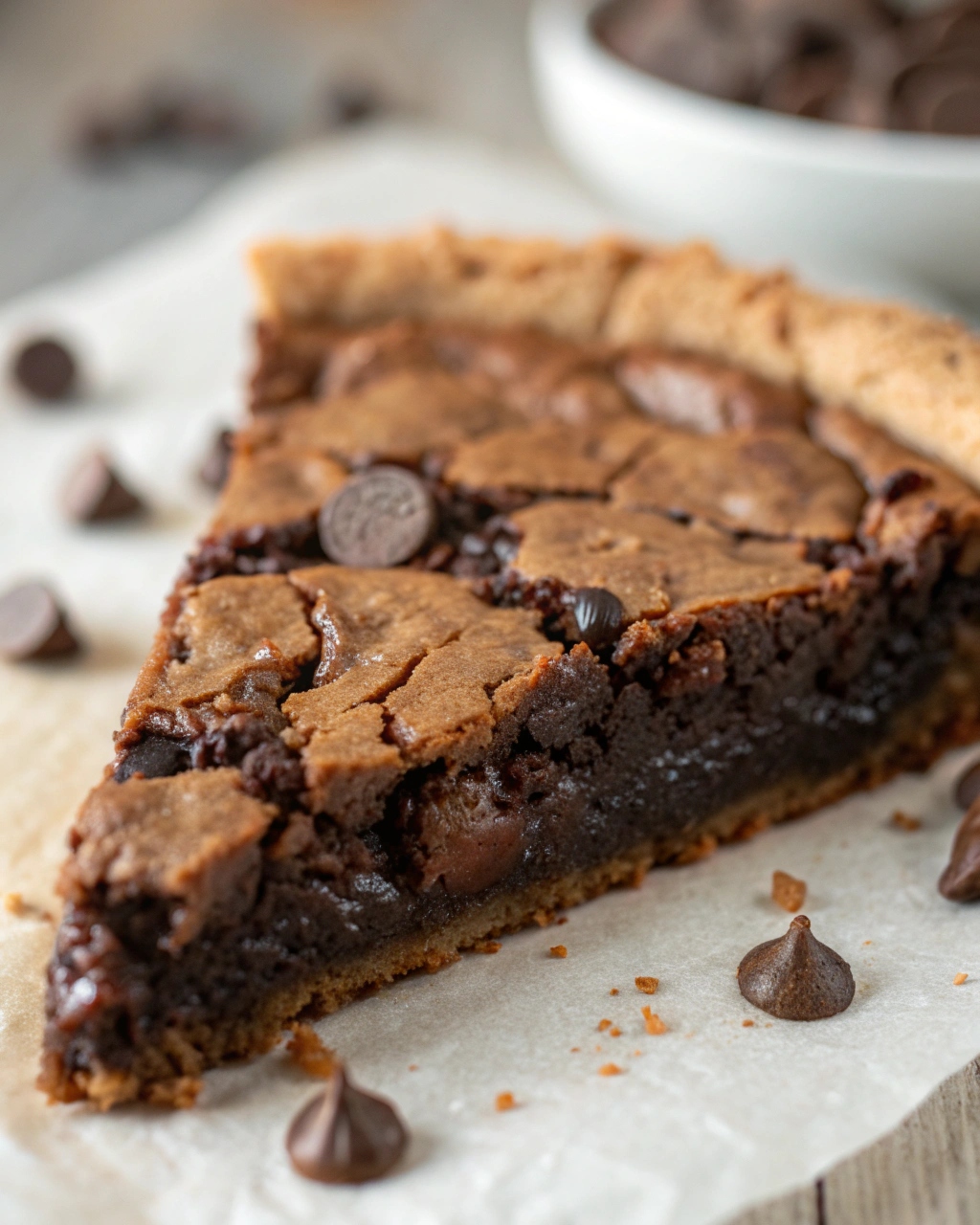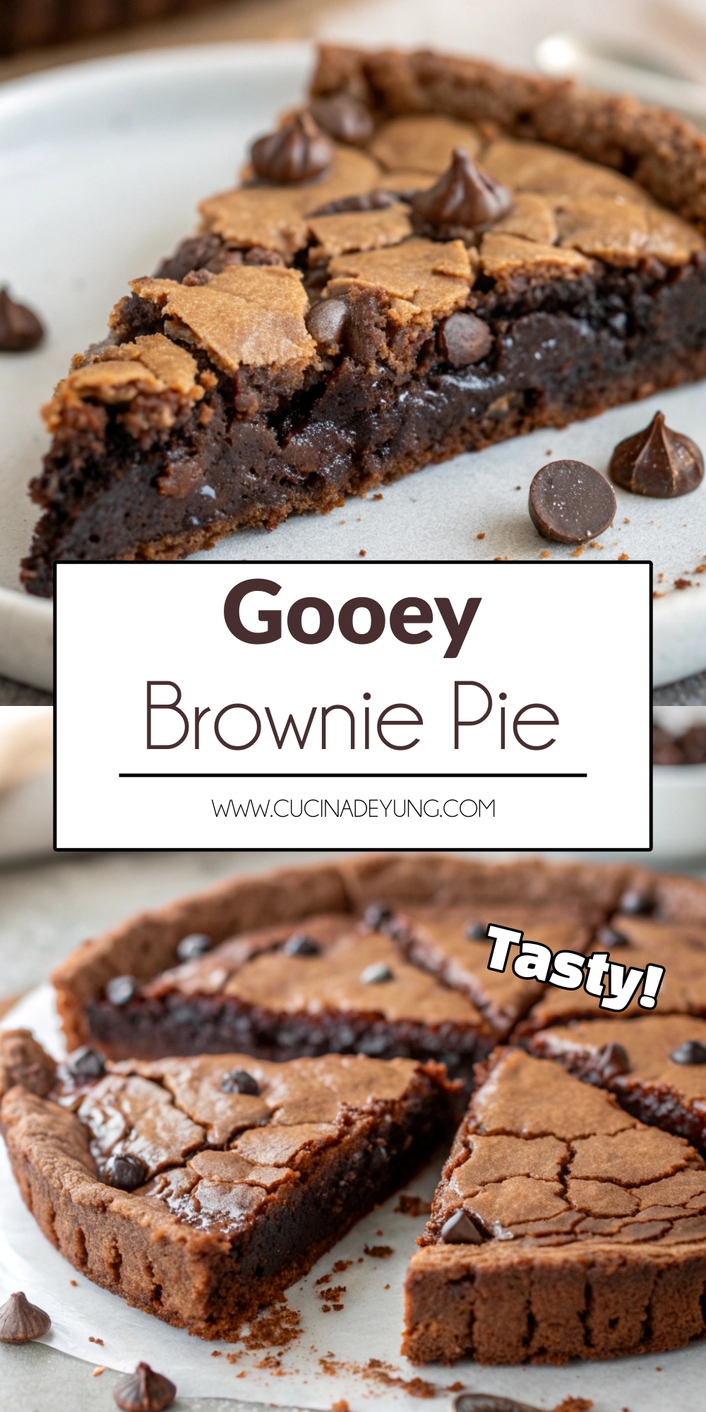 This gooey brownie pie is everything a chocolate lover wants. It has crisp, crackly edges, a soft and fudgy center, and layers of melted chocolate in every bite. Baked like a pie but eaten like the richest brownie you’ve ever had, this dessert is simple to make and impossible to resist. Serve it warm or chilled, plain or topped with hot fudge, and watch it disappear fast.