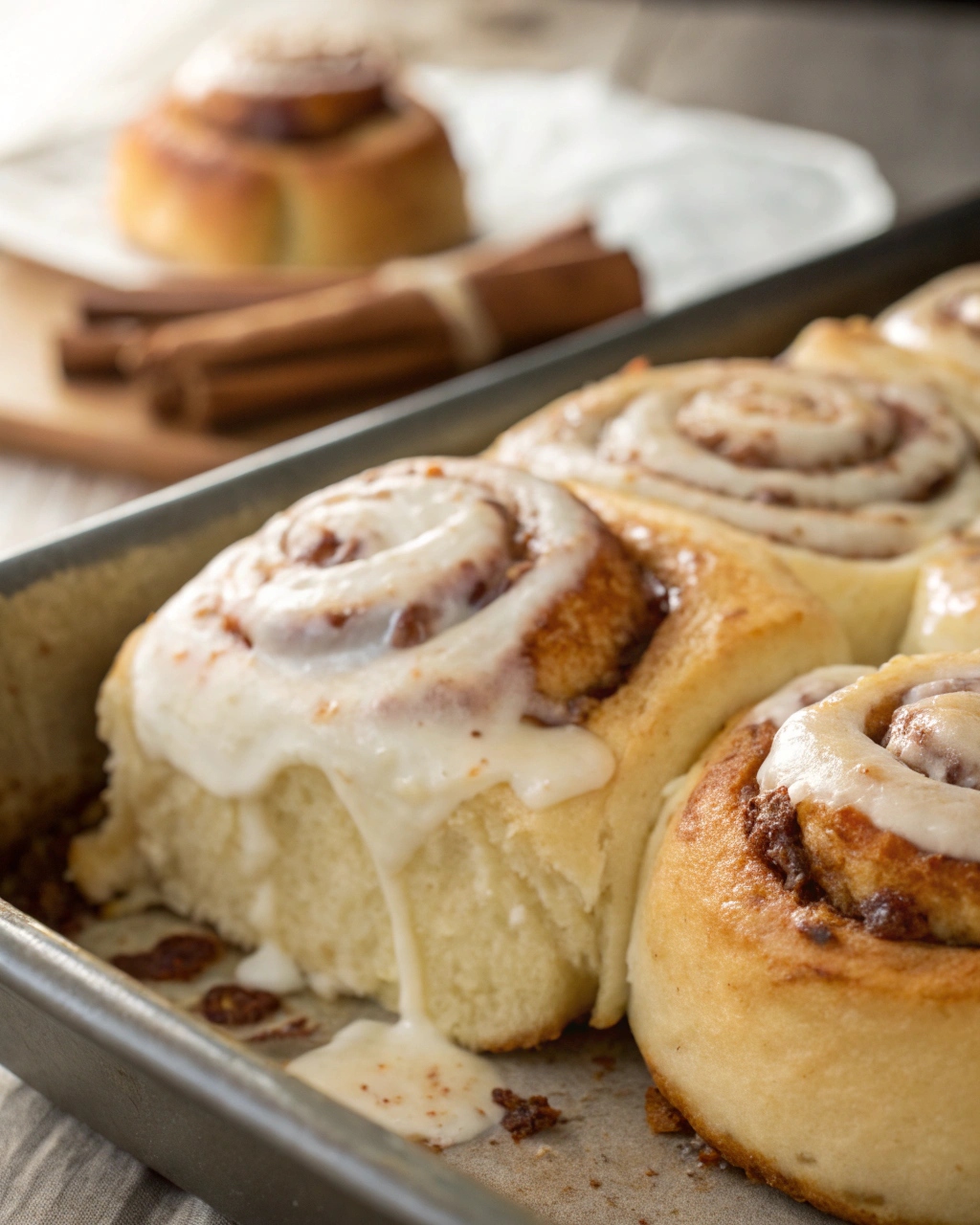 What truly sets these cinnamon rolls apart is the cream cheese glaze. Slightly tangy, perfectly sweet, and ultra-creamy, it balances the warmth of the cinnamon filling and melts effortlessly into the rolls while they’re still warm.
