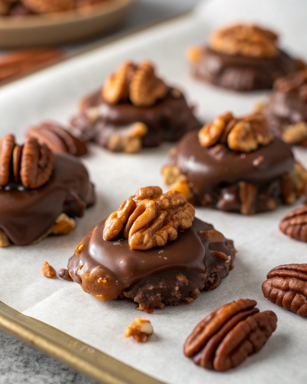 You’ll love this recipe because it delivers old-fashioned candy flavor without complicated steps. The pecans add deep, nutty crunch, the caramel is soft and chewy rather than hard, and the milk chocolate melts smoothly over the top. These turtle clusters are perfect for holidays, homemade gifts, bake sales, or anytime you want a sweet treat that feels special and nostalgic. They store well and always disappear fast.