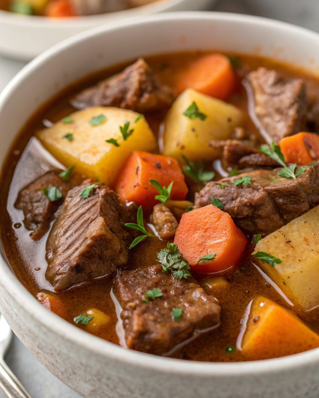 Worcestershire sauce plays a big role in giving this stew its signature flavor. Its savory, umami-rich profile enhances the beef and adds a subtle tang that keeps the broth from tasting flat. Combined with oregano, dried parsley, and the natural sweetness of the vegetables, the broth becomes full-bodied and deeply satisfying.