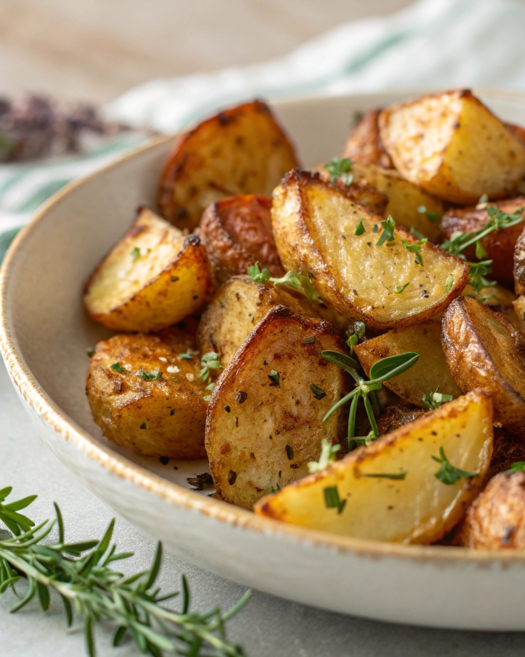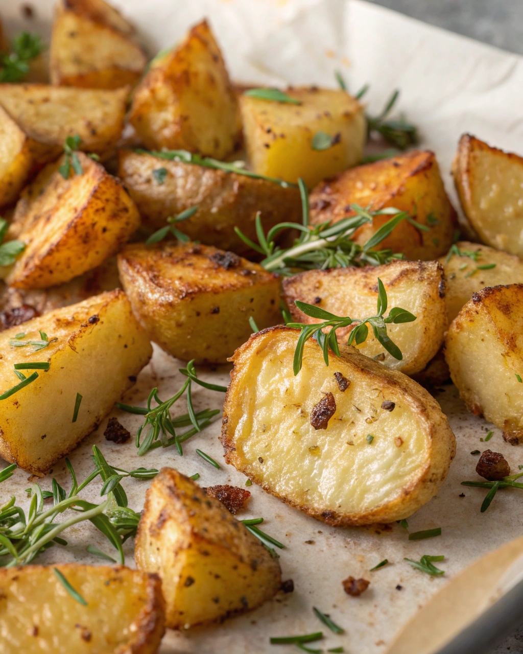 Olive oil plays an important role here. It helps the potatoes roast evenly and develop that golden, slightly crisp exterior.