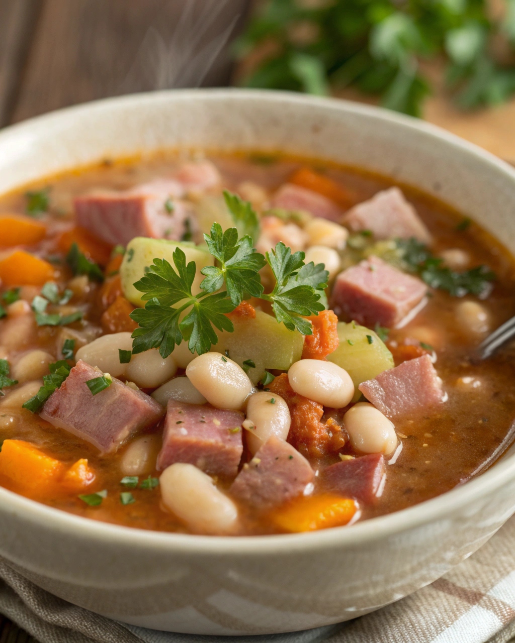 Cannellini beans give this soup its hearty body. They’re creamy, mild, and perfect for absorbing the flavors of the broth. Combined with chunks of leftover ham, the soup becomes a complete, filling meal that’s satisfying enough on its own or alongside a slice of bread.