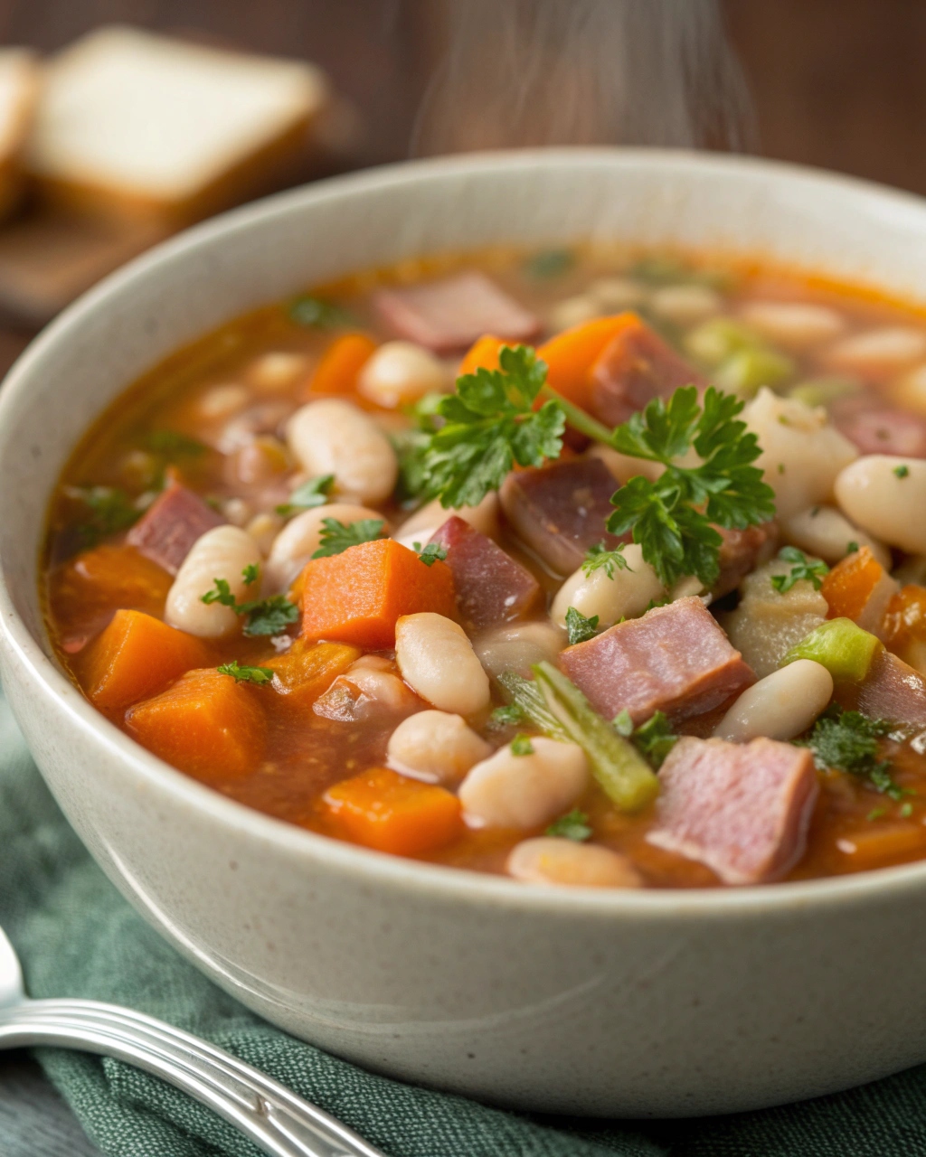 Using a ham bone is the secret to achieving that rich, smoky broth that makes this soup unforgettable. As it simmers, the bone releases flavor, nutrients, and natural gelatin, which gives the broth body and warmth. Even though the ingredients are basic, the slow simmering process results in a soup that tastes luxurious and deeply comforting.