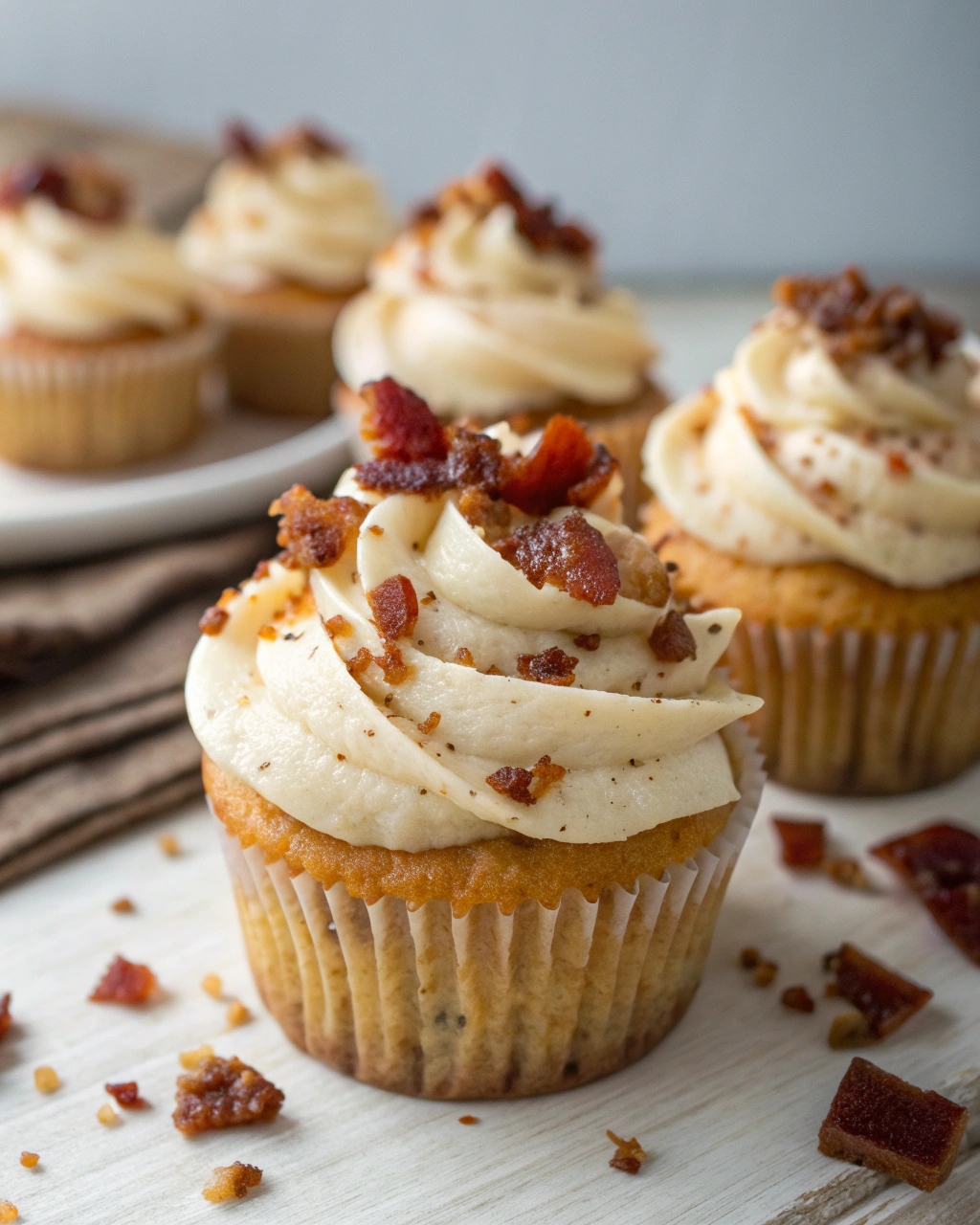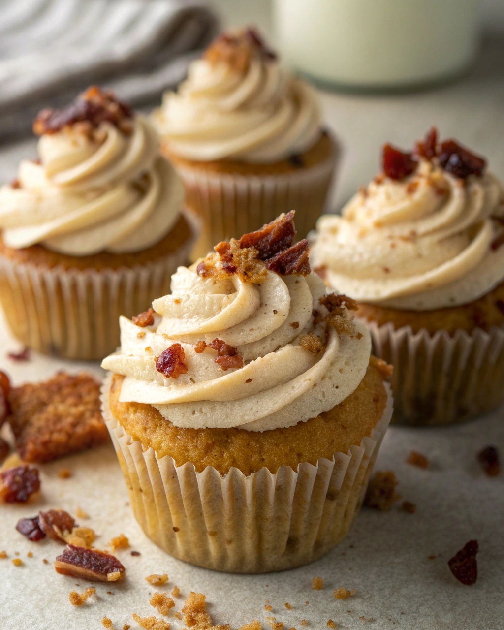 The idea for maple and bacon together isn’t new. In classic diners and weekend brunches, stacks of pancakes dripping with maple syrup often end up mingling with crispy bacon strips on the plate. These cupcakes capture that moment — the sweet syrup soaking into smoky bacon — and elevate it into a handheld dessert that’s perfect for modern gatherings.
