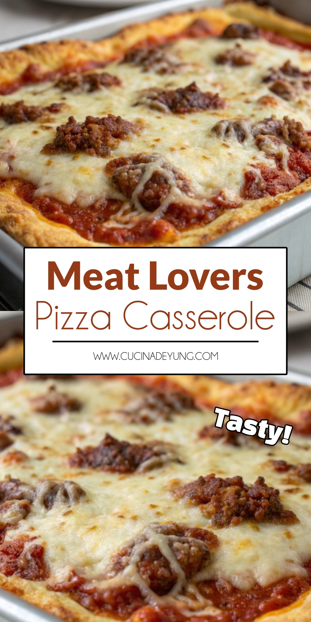 Meat Lovers Pizza Casserole is a hearty, oven-baked comfort food that brings all the flavors of a classic pizza into an easy, family-friendly casserole. Made with seasoned ground beef, turkey sausage, beef pepperoni, rich tomato basil sauce, melty mozzarella cheese, and a golden pizza crust topping, this dish is perfect for busy weeknights, potlucks, or cozy weekend dinners.