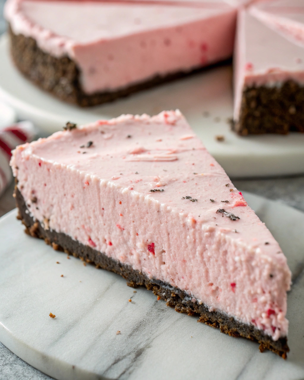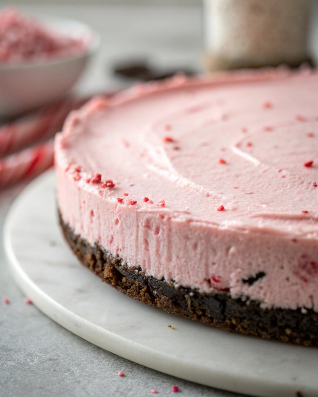 The crust, made from crushed Oreo cookies, adds a deep chocolate base that contrasts beautifully with the creamy peppermint filling. The chocolate-mint combination is timeless, reminiscent of peppermint bark and holiday treats that everyone loves. The crust comes together quickly and sets firmly once chilled, creating the perfect foundation for the airy filling.