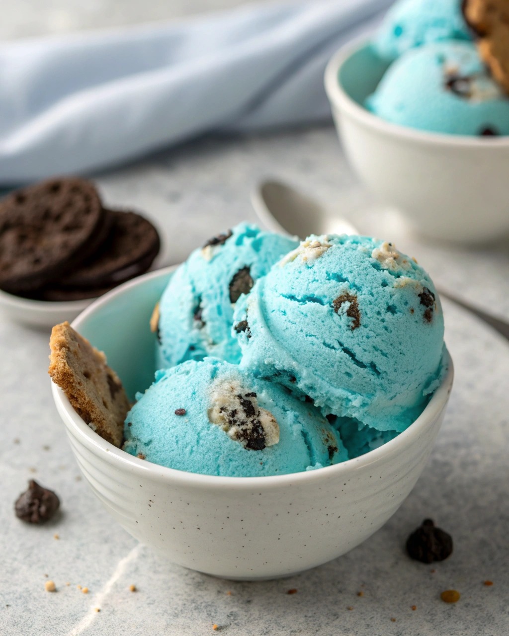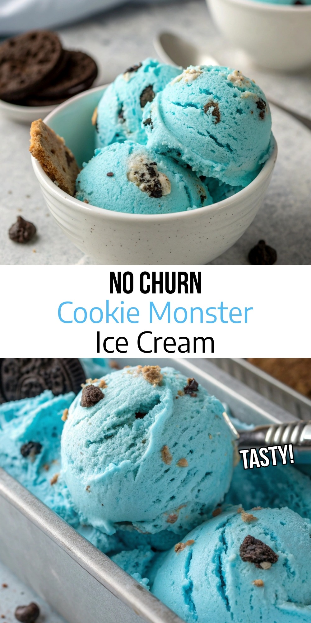 Blue, dreamy ice cream packed with chocolate sandwich cookies and chocolate chip cookies—no machine needed, just whip, fold, and freeze.