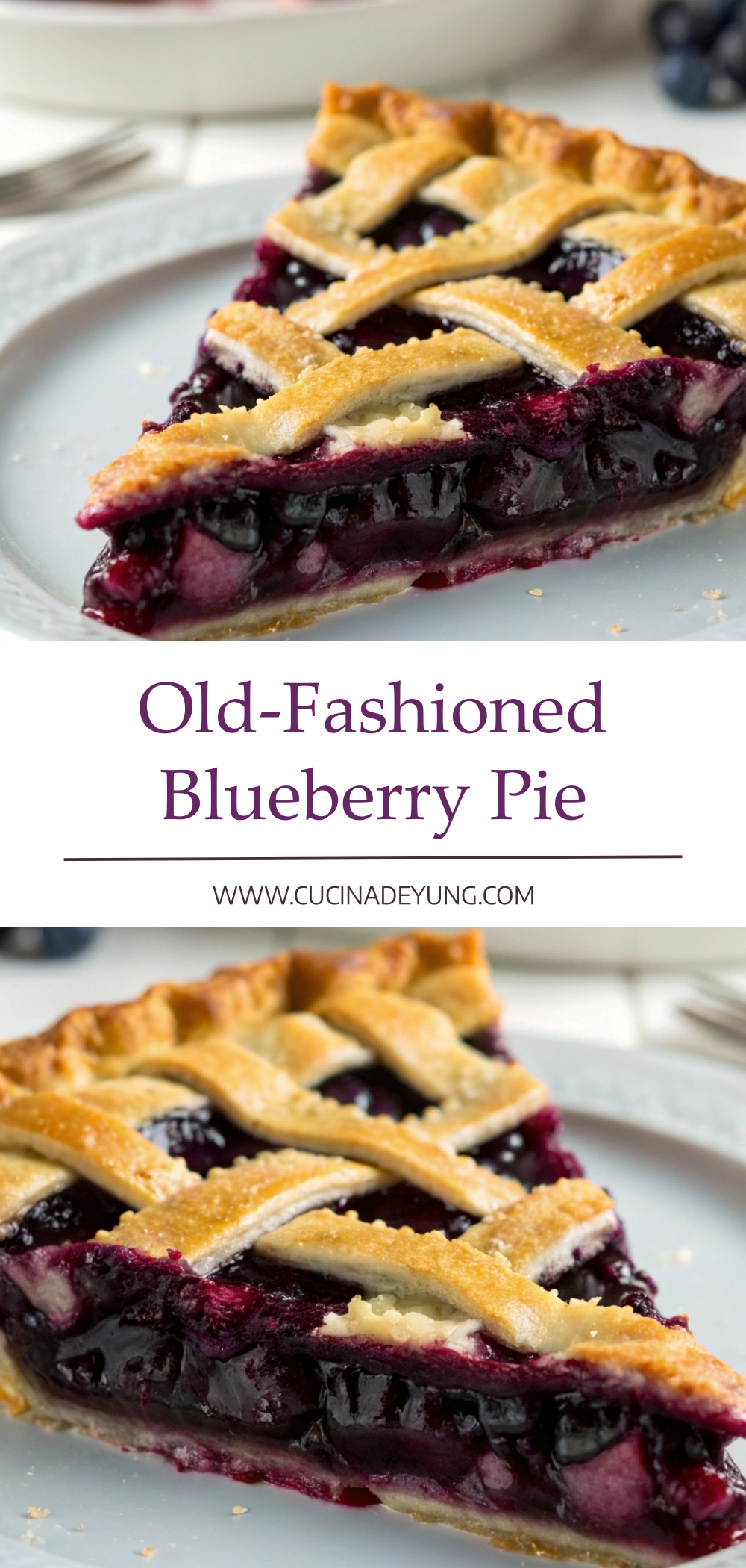 This old-fashioned blueberry pie is a true classic, featuring plump, juicy blueberries baked into a thick, glossy filling and wrapped in a buttery, flaky double crust. A hint of cinnamon enhances the natural sweetness of the berries, while a lattice top gives the pie a rustic, homemade charm. It’s the kind of dessert that feels nostalgic, comforting, and perfect for sharing at family gatherings or special occasions.