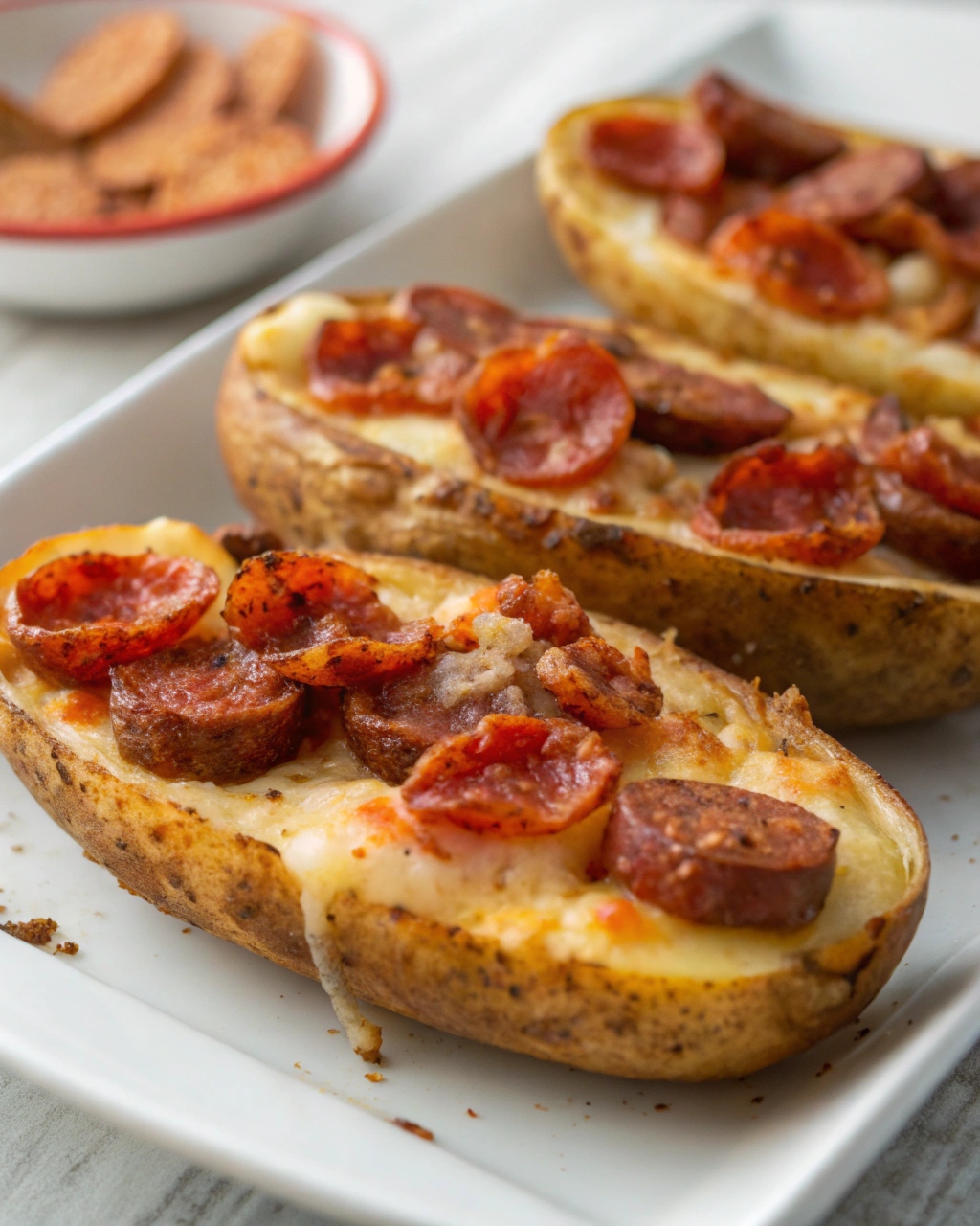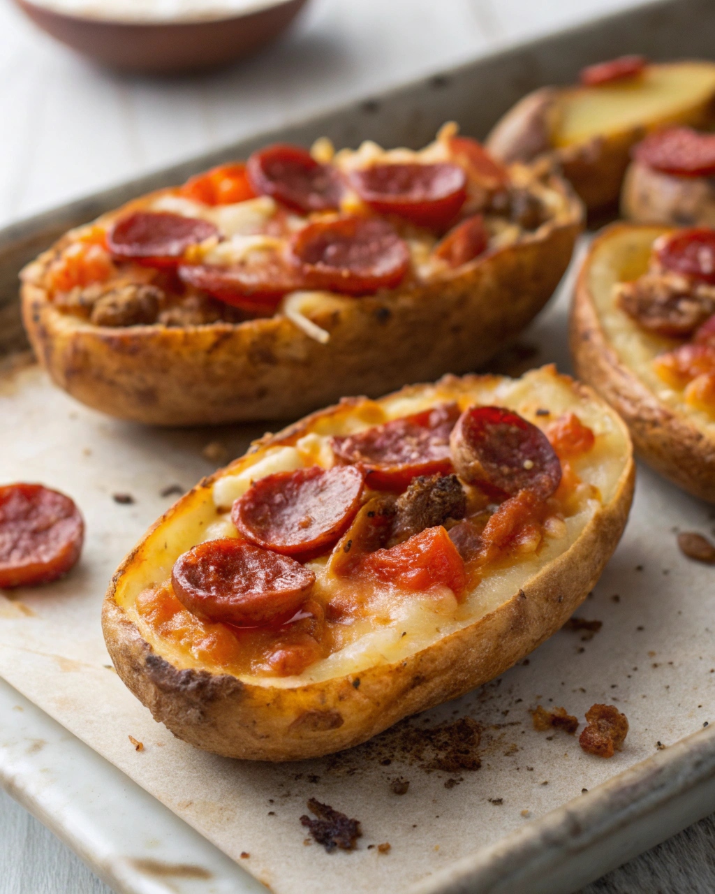 Emotionally, these pizza potato skins bring a sense of fun and creativity to the kitchen. They turn a familiar favorite into something new and exciting.