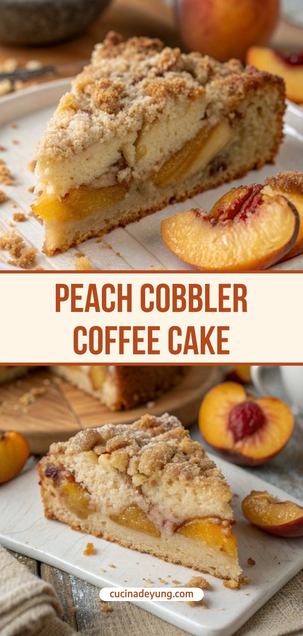 Peach Cobbler Coffee Cake brings together the best of two favorites: cobbler’s juicy fruit and coffee cake’s tender crumb. The base batter begins with a balance of milk, sour cream, butter, brown sugar, egg, and vanilla, creating a moist, softly sweet cake that rises gently. To that is added a classic dry mixture of flour, baking powder, and cinnamon, giving structure and a hint of warming spice. When you fold in sliced peaches, each bite offers fruit chunks that burst with juice, softening the cake further from the inside out.