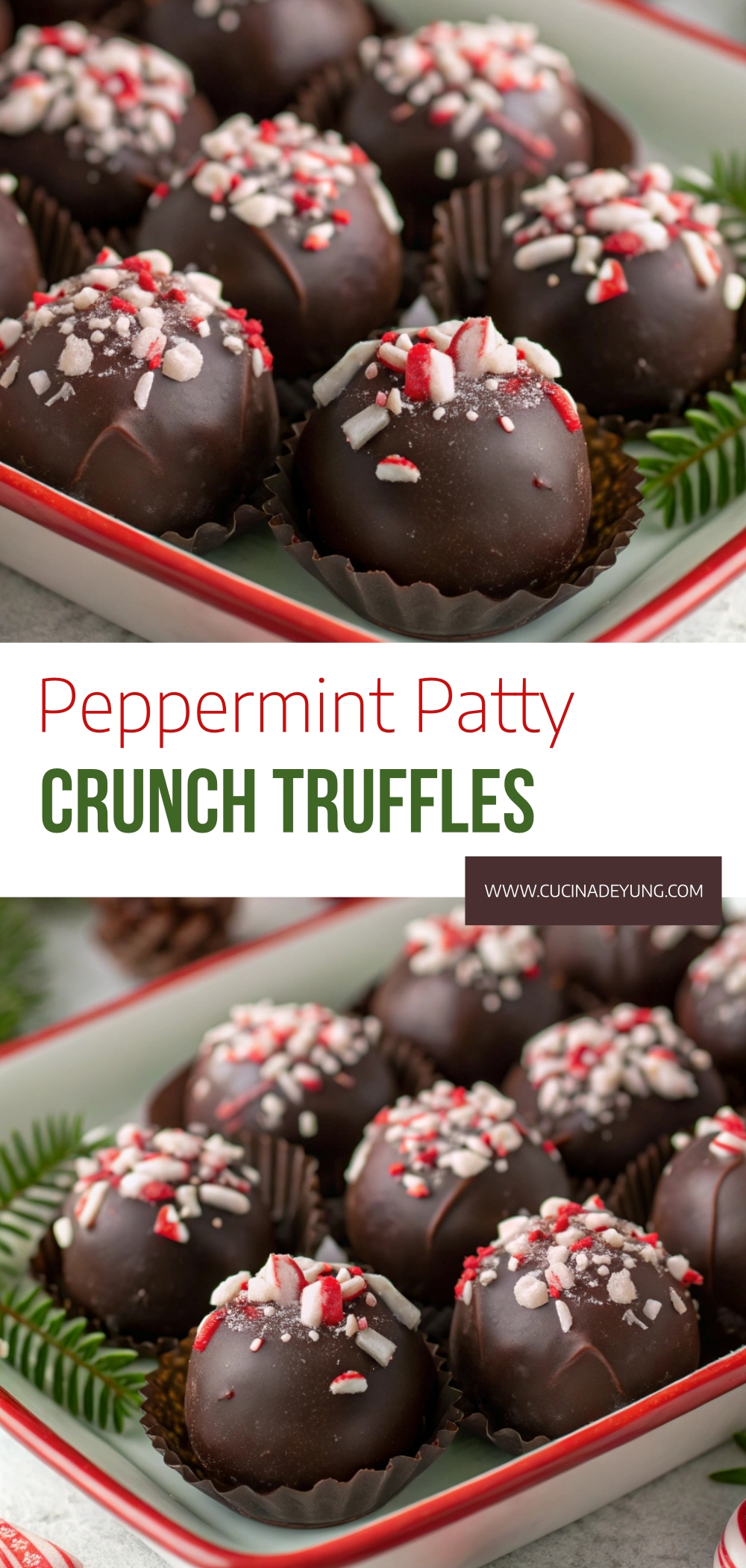 You’ll love this Peppermint Patty Crunch Truffles recipe because it offers everything you want in a holiday treat—effortless preparation, impressive presentation, and a flavor that tastes like it came straight from a gourmet confectionery. The recipe is completely no-bake, uses simple pantry ingredients, and requires only brief chilling times, making it perfect for busy holiday schedules. The cool peppermint center is refreshing yet creamy, while the dark chocolate coating gives the truffles a luxurious finish that feels indulgent but not overly sweet. The added peppermint crunch chocolates create a delightful contrast of texture that elevates the traditional peppermint patty experience. These truffles are also incredibly versatile: wrap them in festive boxes for gifts, display them on dessert tables, or store them in the freezer for a quick holiday treat anytime. Whether you’re a peppermint lover, a chocolate fan, or simply searching for the perfect no-bake Christmas candy, these truffles are a guaranteed seasonal favorite.