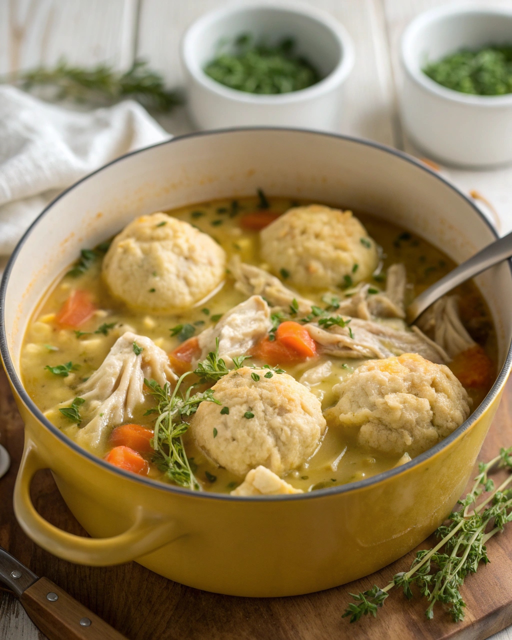 This dish is made for sharing. It’s perfect for family dinners, potlucks, or cozy nights in. A big pot of Chicken & Dumplings on the stove invites everyone to gather around — and that’s what real comfort food is all about.