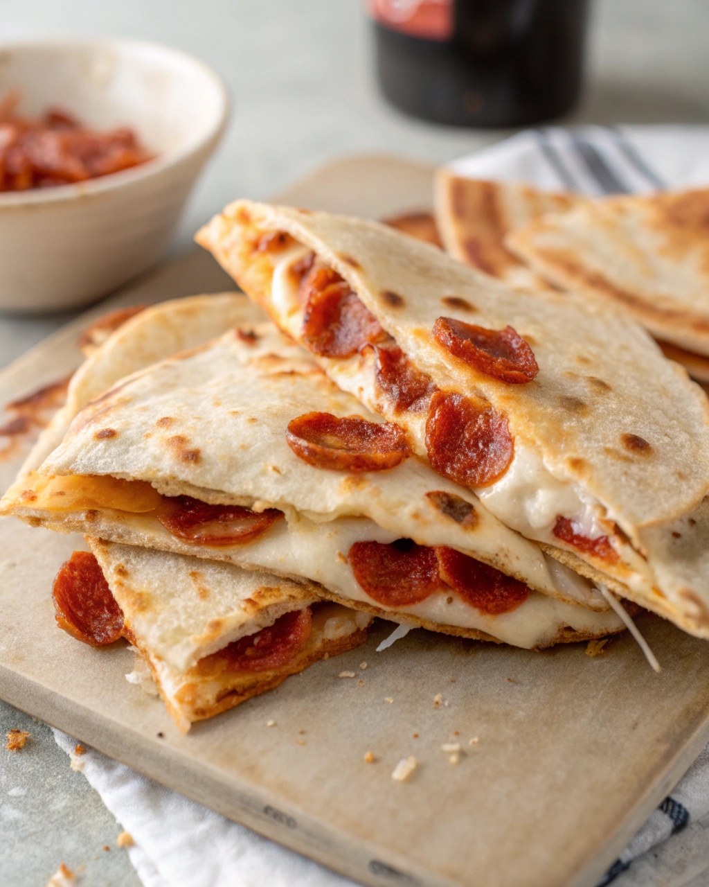 Pizza quesadillas combine the flavors of classic pizza with the crispy texture of a quesadilla. Filled with mozzarella cheese, pepperoni, and pizza sauce, they’re quick to make and perfect for lunch, dinner, or a fun snack.