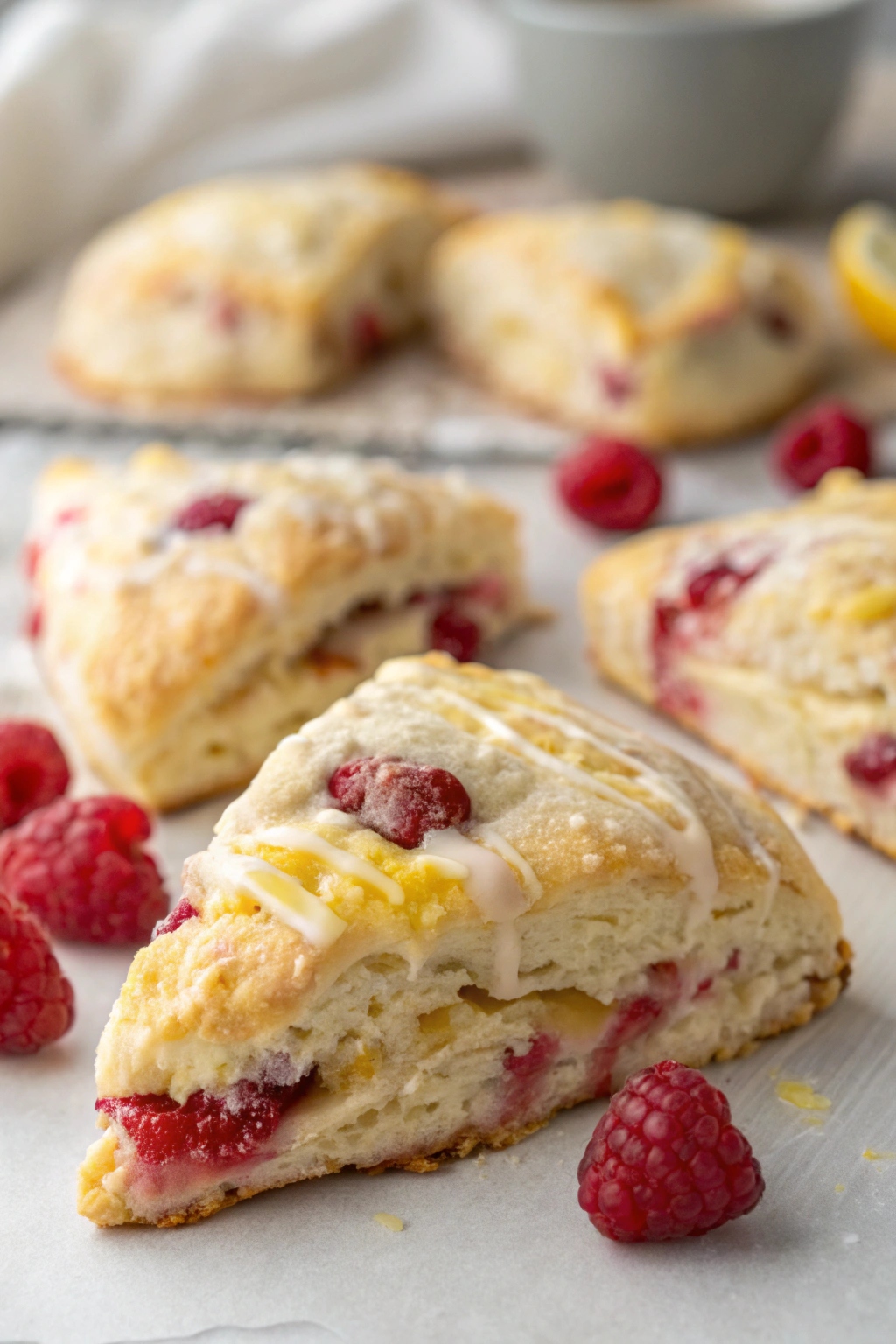 These raspberry lemon scones are tender, buttery, and packed with bright citrus flavor and bursts of juicy raspberries. Baked until lightly golden and finished with a simple lemon glaze, they’re the kind of homemade scones that feel special yet approachable for everyday baking.