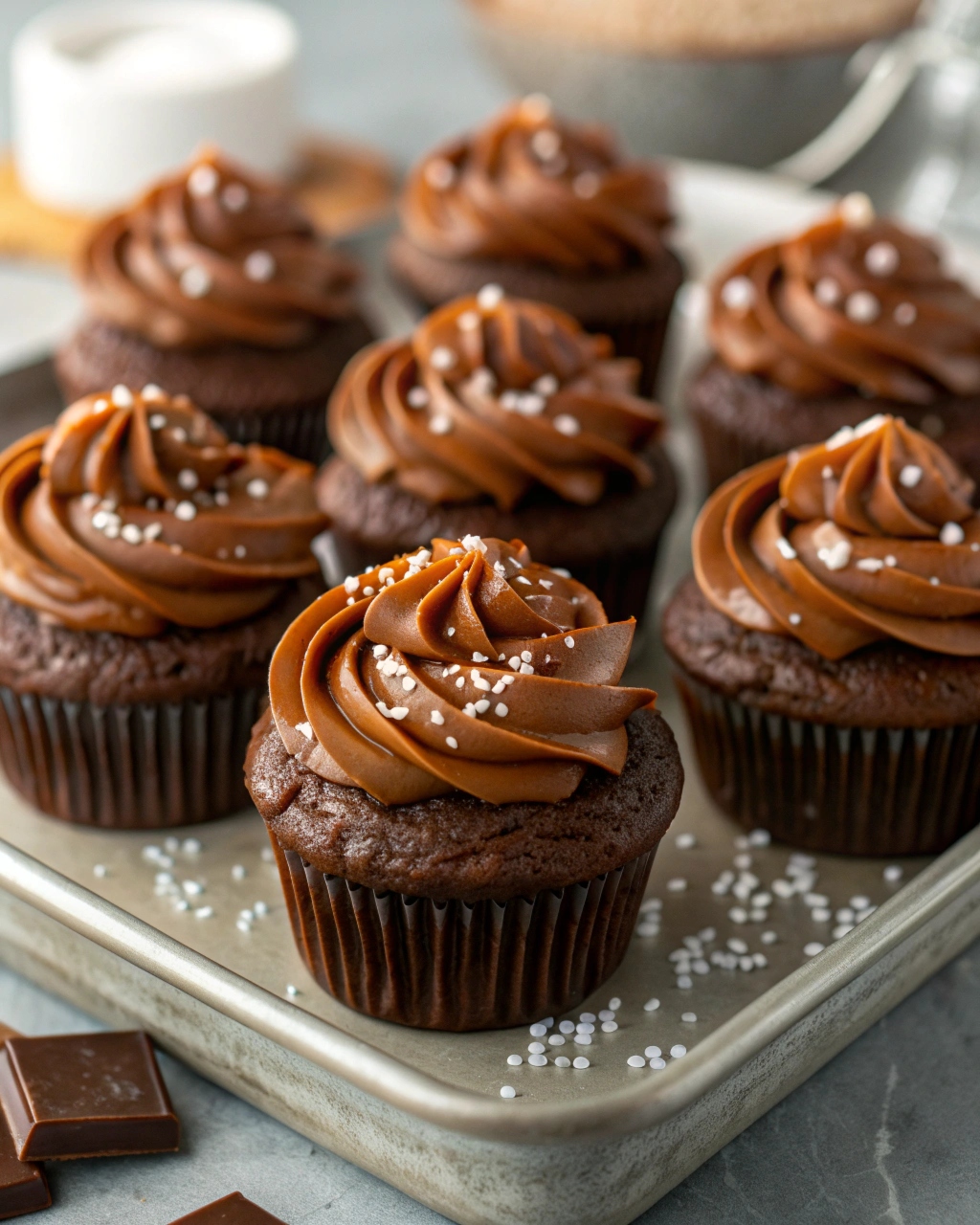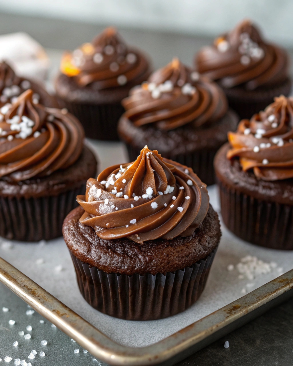 The caramel filling is what truly sets these cupcakes apart. Whether you use homemade or store-bought caramel, filling the center creates a molten, gooey surprise that elevates the cupcake from delicious to unforgettable. Pairing sweet caramel with a finishing sprinkle of sea salt creates an irresistible sweet–salty balance.